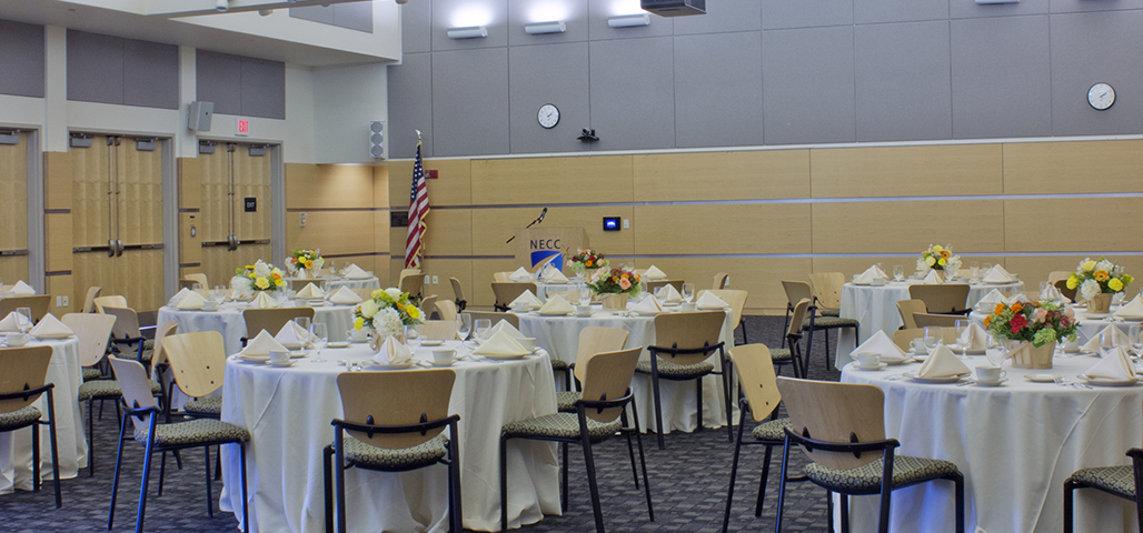 - For questions about catering, serving alcohol or if you require media services or special set-up, please contact an NECC Director of Auxiliary Services at agagne@necc.mass.edu.