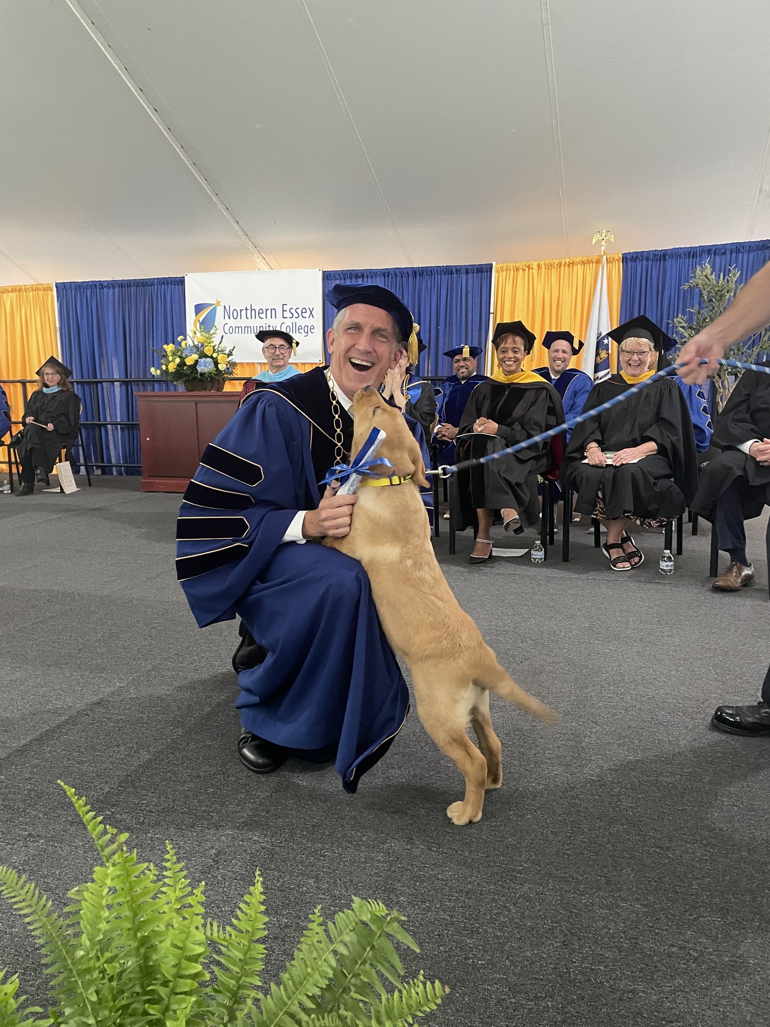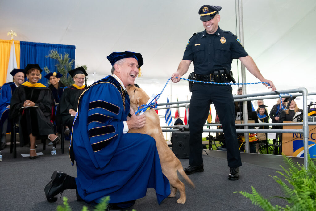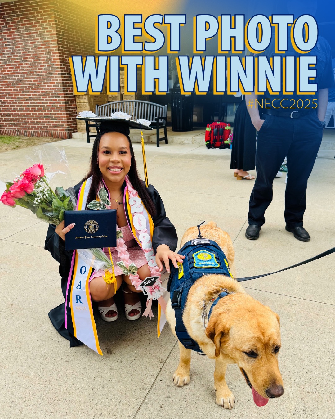 This year’s ceremony featured a surprise special guest: Winnie, NECC’s comfort dog in training, received a certificate for completion of her first puppy school class.