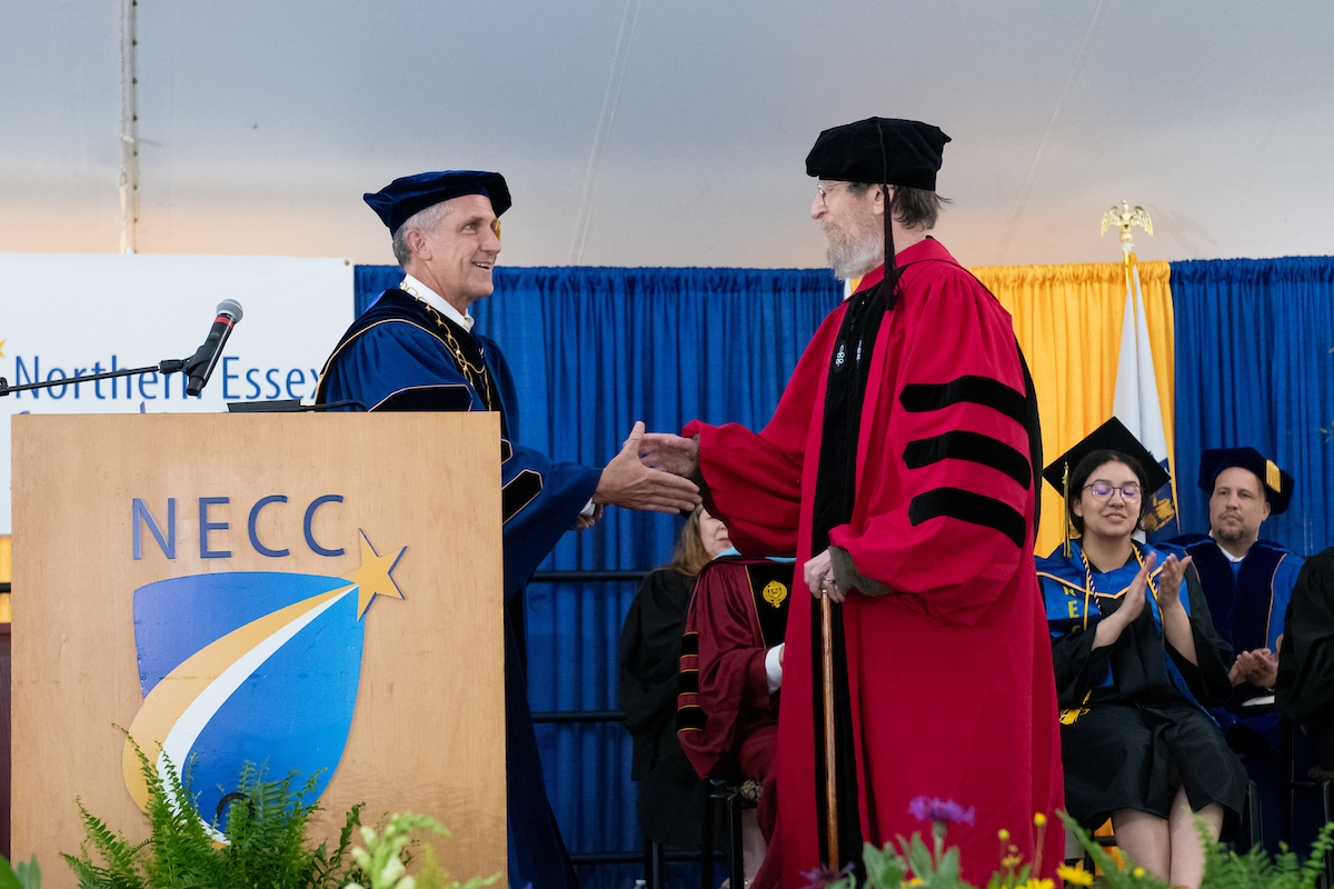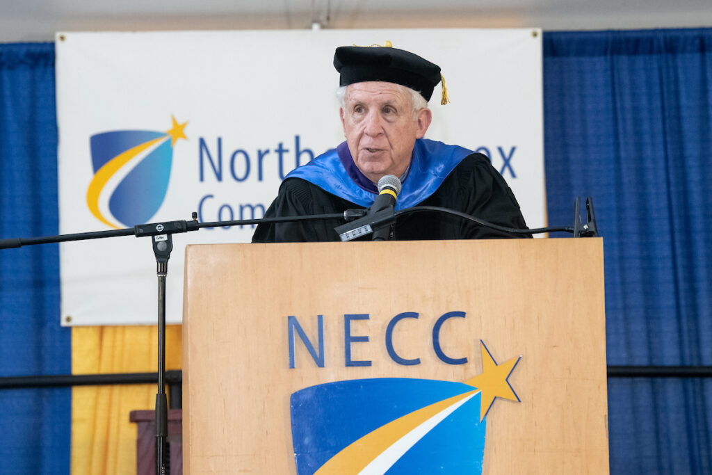 “Beyond his distinguished roles in both the public and private sectors, Bob has demonstrated a generous, steadfast commitment to helping community college students to succeed,” said NECC President Lane Glenn. “He has inspired and led practical research focused on enhancing student retention and degree completion by addressing student basic needs, with an eye toward the future and influencing national public policy and investment. I look forward to Bob sharing his insights and guidance with the Class of 2025.”