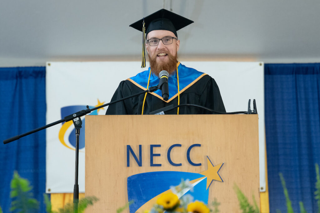 NECC President Lane Glenn opened the ceremony with words of encouragement for the class of 2024. “During your time at NECC, you have faced challenges, you have all been through the fire, and you know how it feels. You are stronger and as prepared as any generation that has come before you to take your grit and do great things with it.”