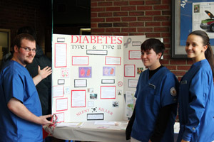 Brett R Lundry (left) of Salisbury, Aliza Kenny of Danville NH, and Darlene Rosario of Lawrence offered information on diabetes at the Health Fair
