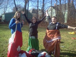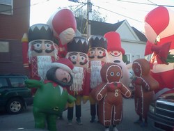 Jessica Goulet (volleyball and basketball), Aja Metcalf (basketball), and Kaila Nicholson (volleyball and basketball) were dressed in inflatable candy cane, elf, and gingerbread cookie costumes in the parade, which draws thousands of local residents each year.