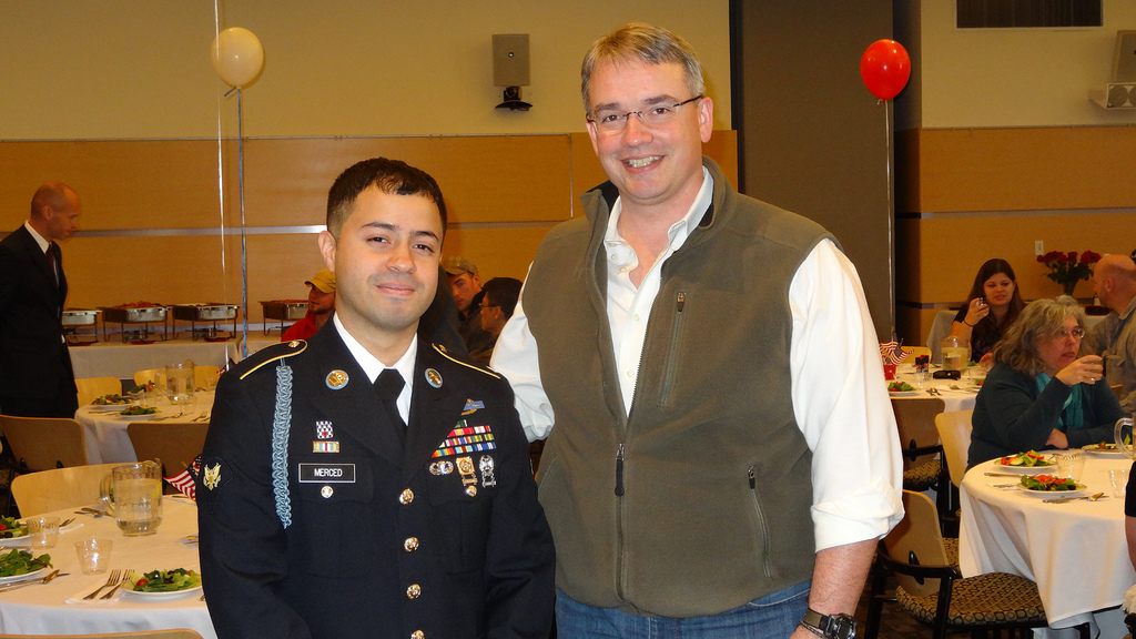 NECC student Justin Merced, a veteran who served in Iraq and Afghanistan, with NECC alum Phil Starks, guest speaker at the NECC Veterans Day Luncheon.