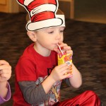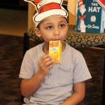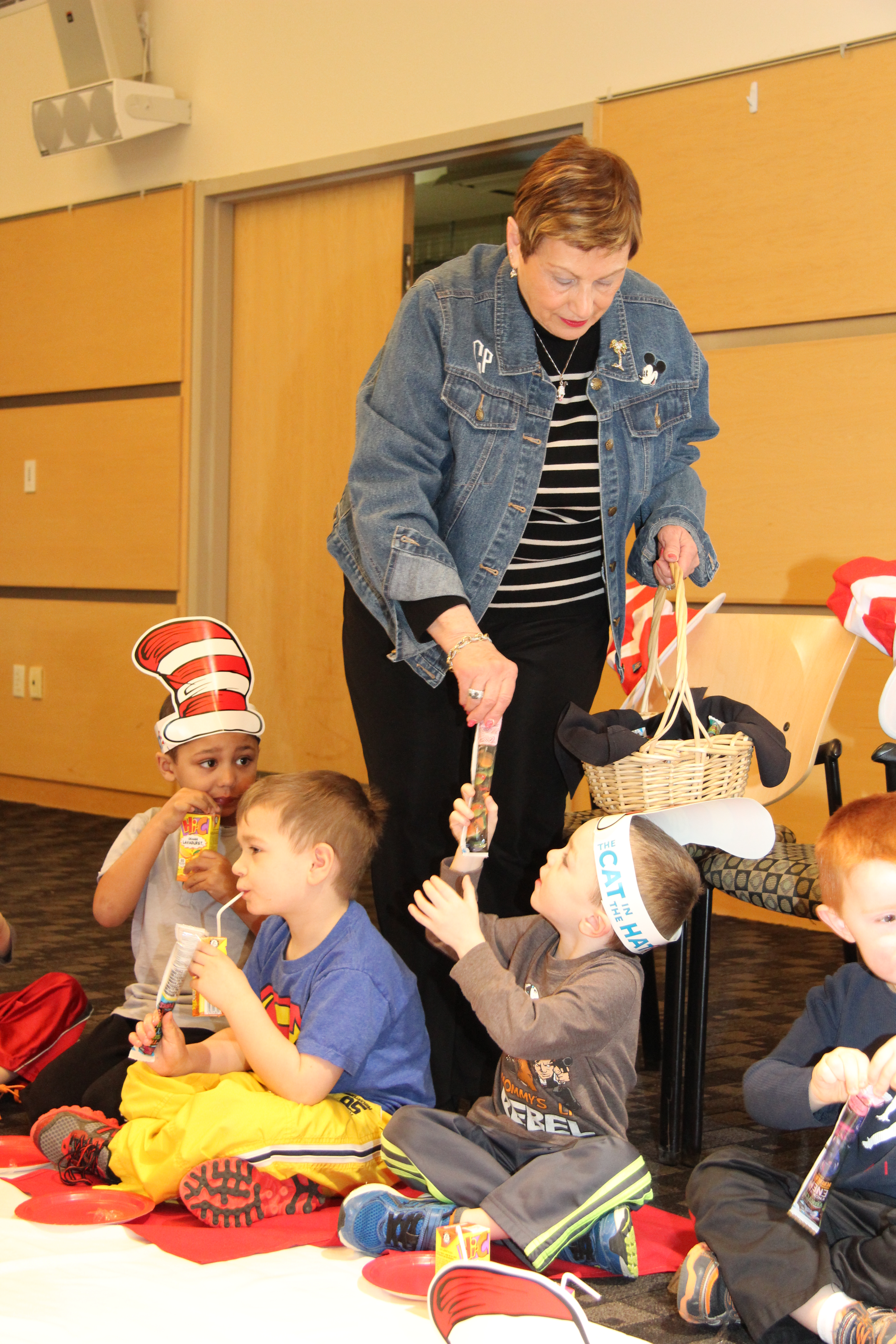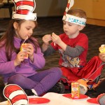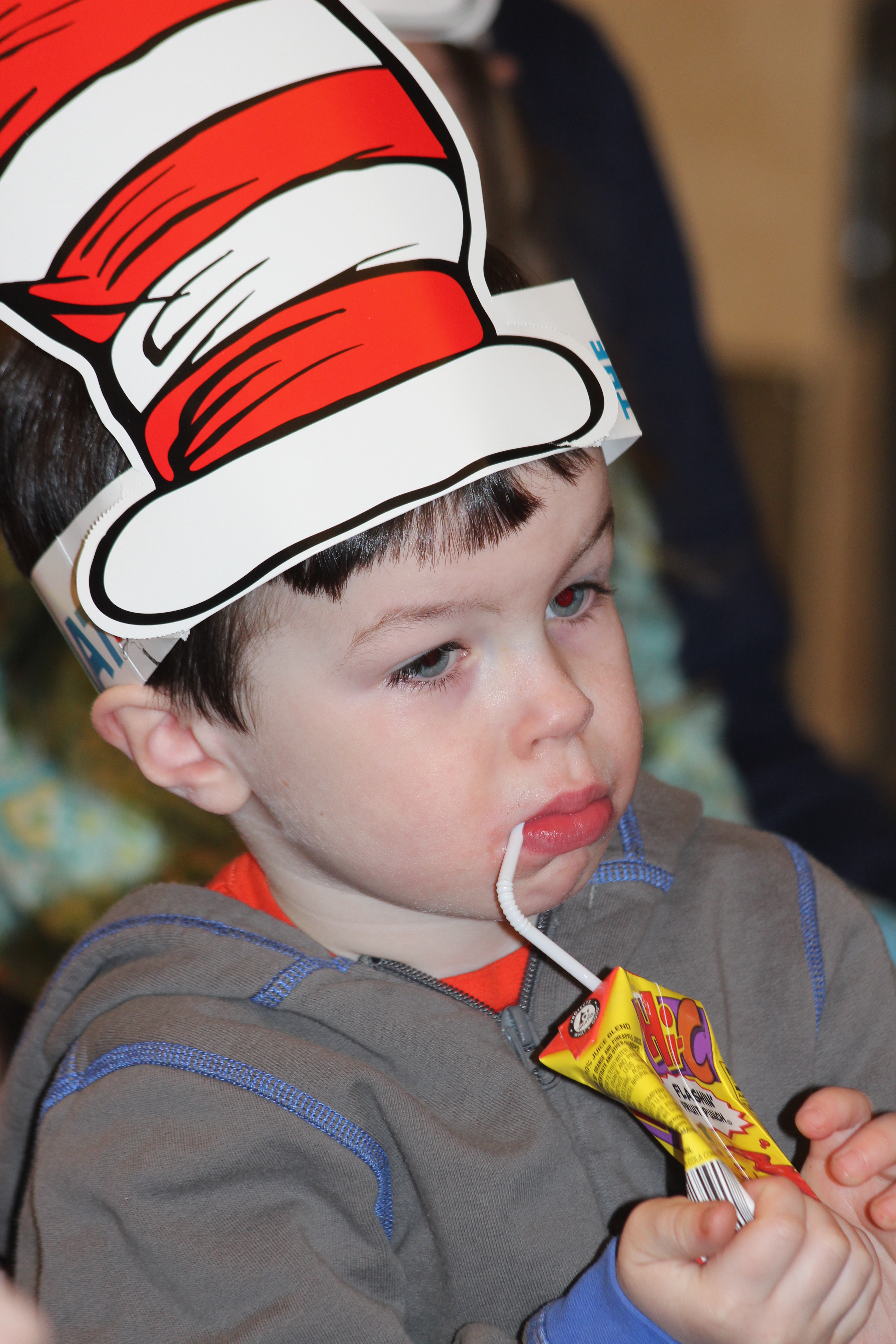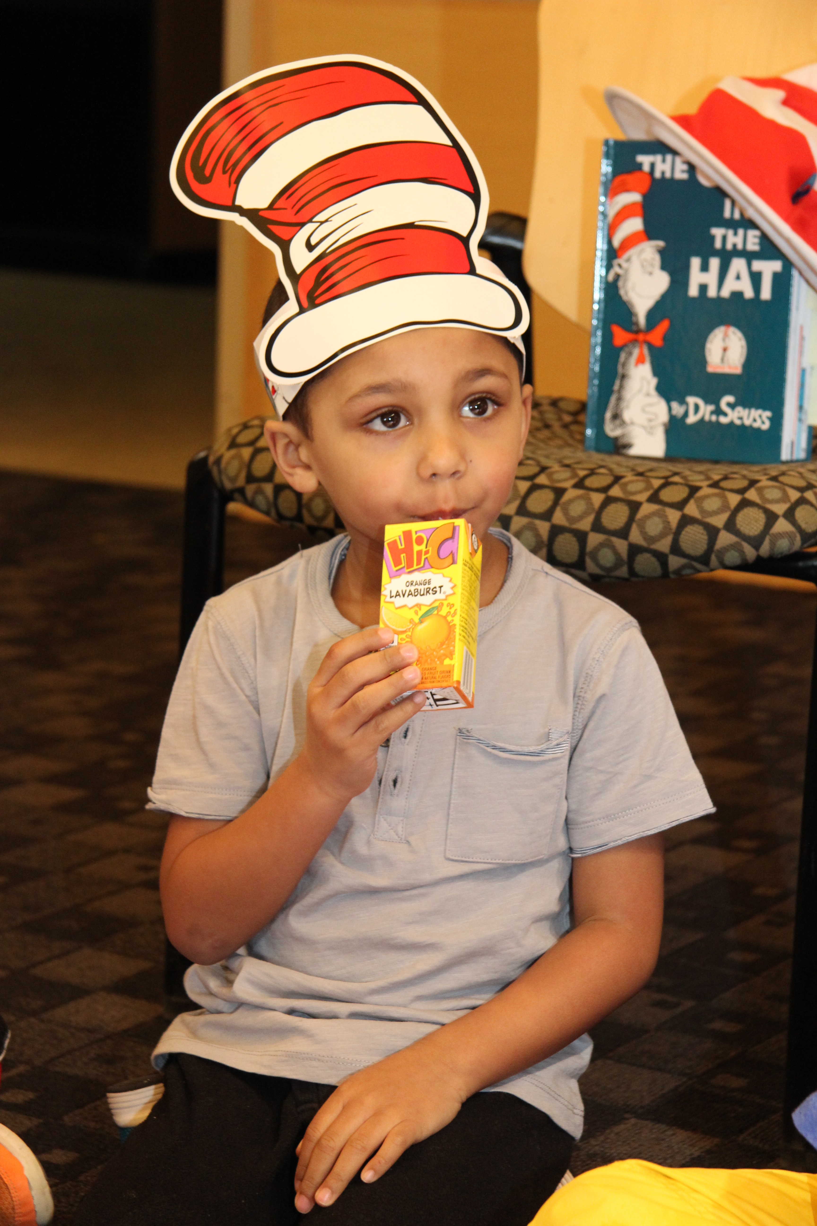 Wearing red and white stripped Dr. Seuss headbands, the children feasted on skewers of strawberries and bananas, yogurt, and juice. The children were given copies of the iconic book as they were leaving the party.