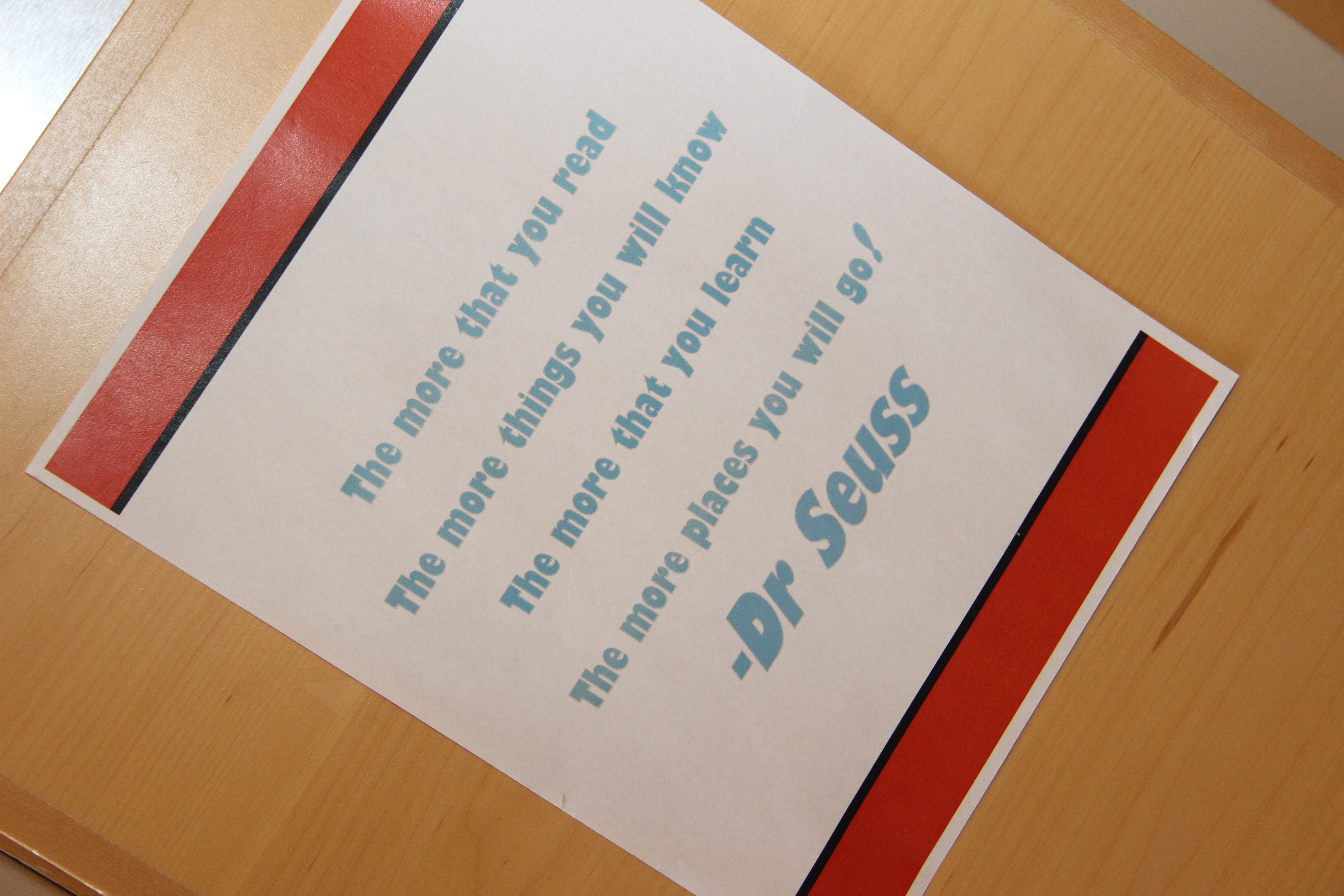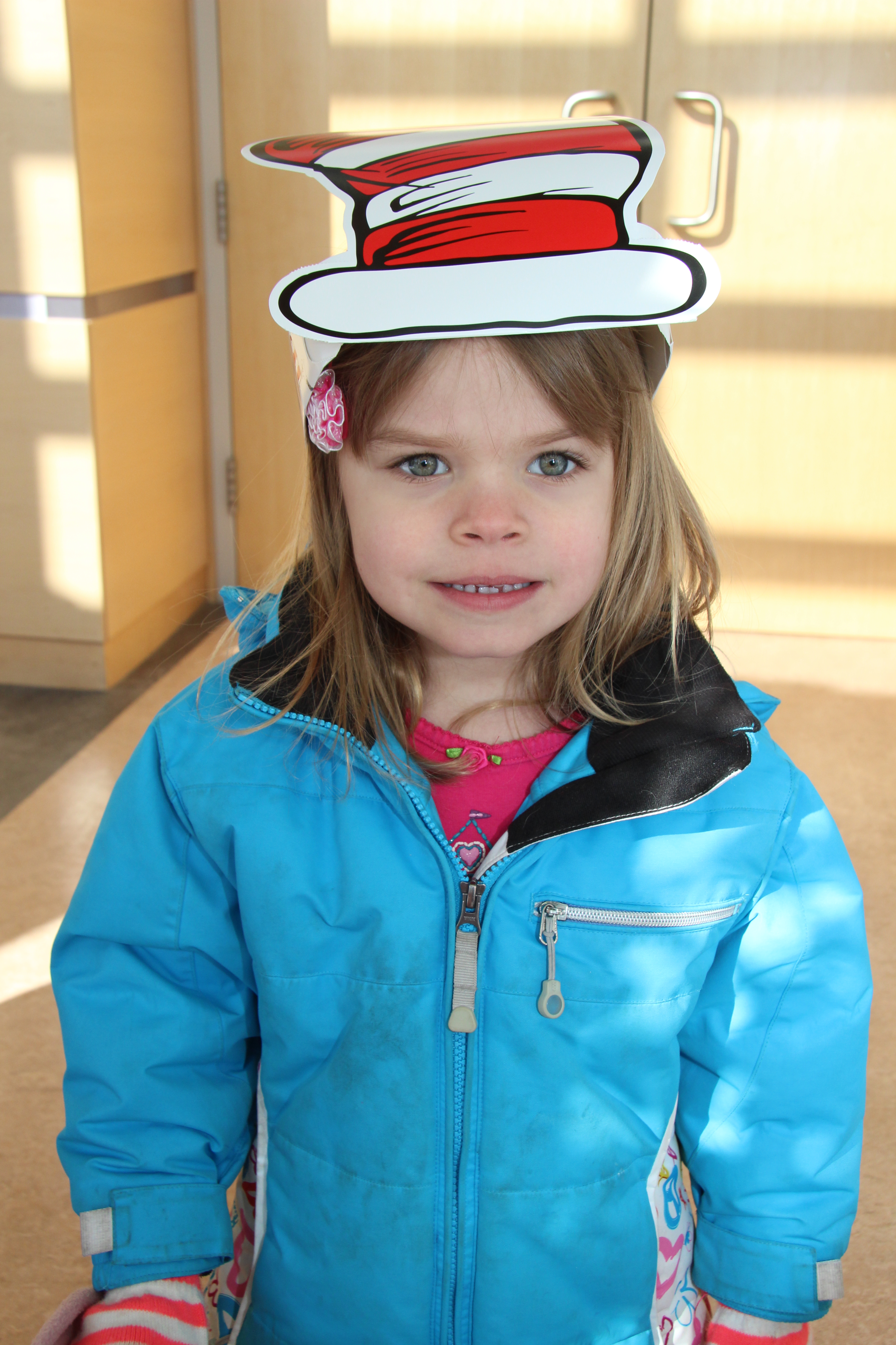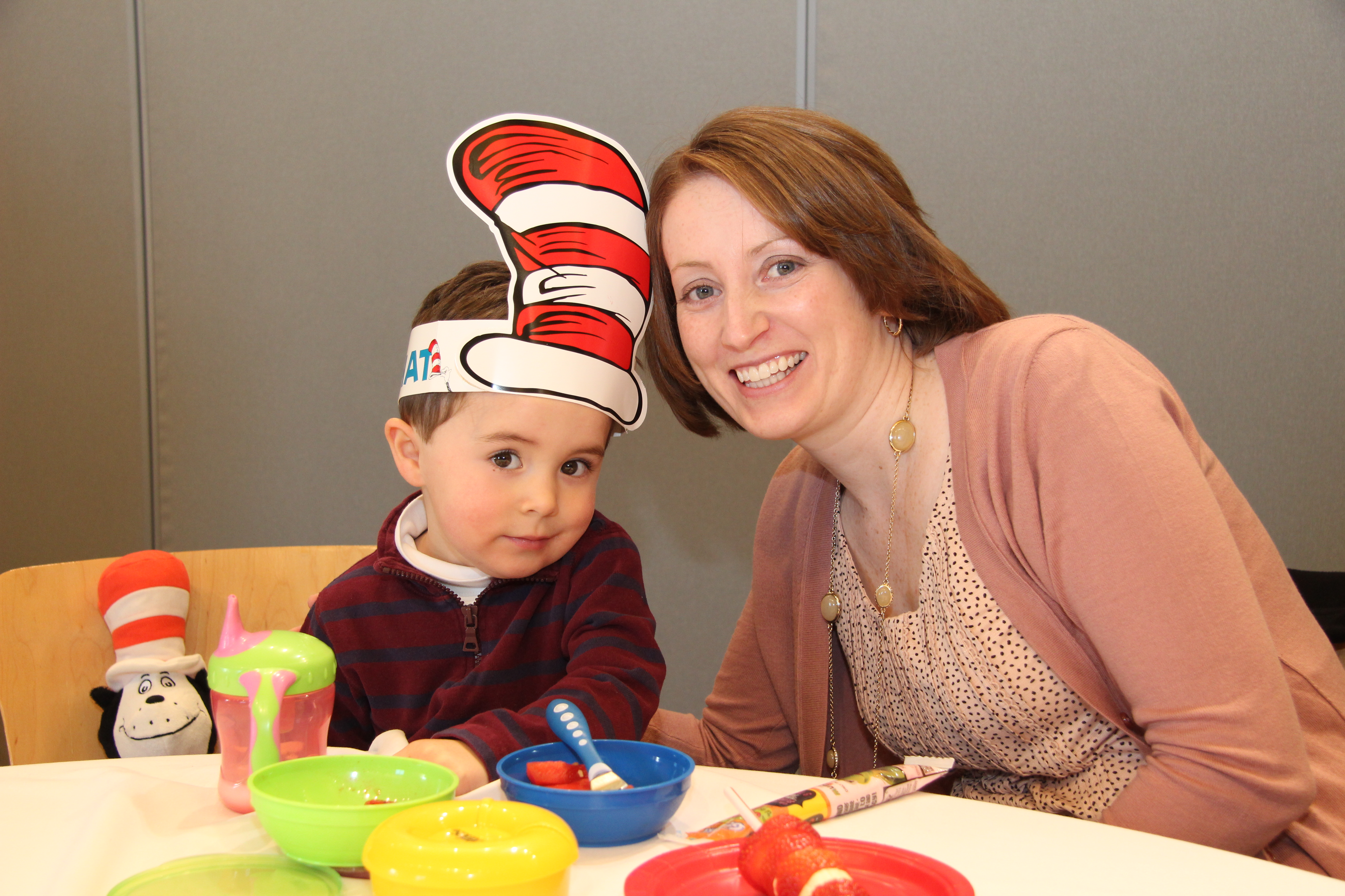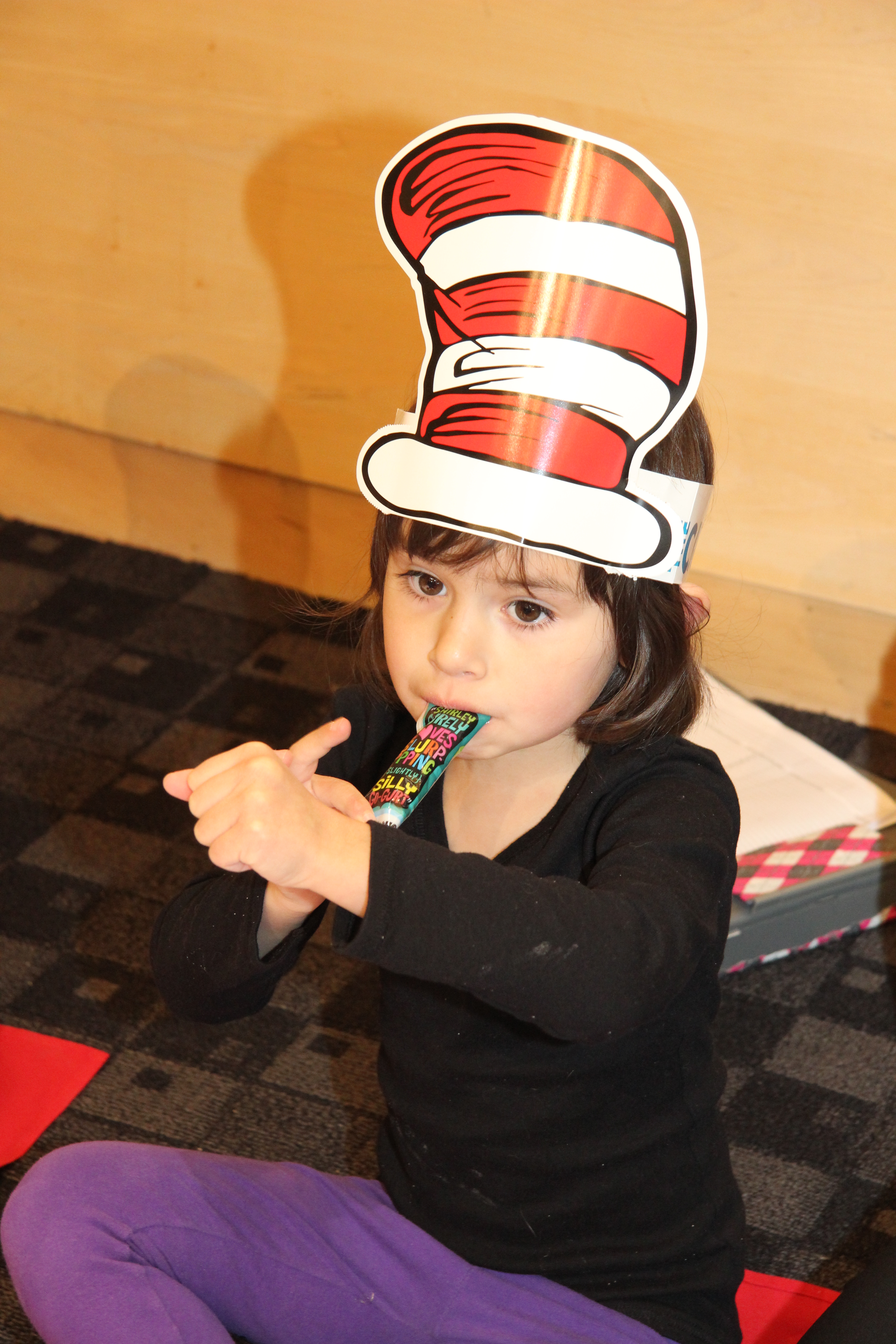 Wearing red and white stripped Dr. Seuss headbands, the children feasted on skewers of strawberries and bananas, yogurt, and juice. The children were given copies of the iconic book as they were leaving the party.
