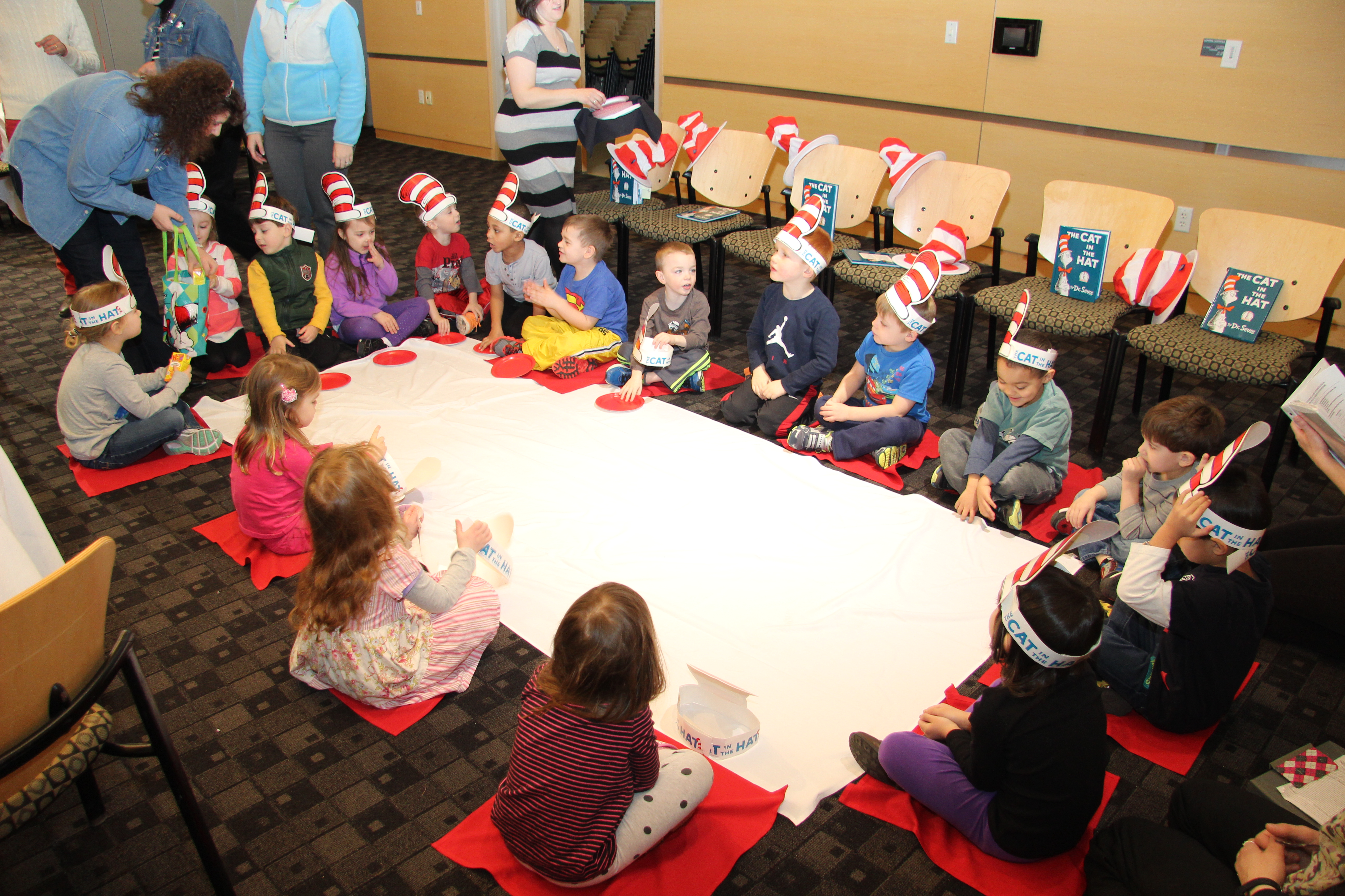Northern Essex Community College students, faculty and staff celebrated Dr. Seuss’s birthday with more than 30 children from the Little Sprouts Day Care located on the Haverhill campus.