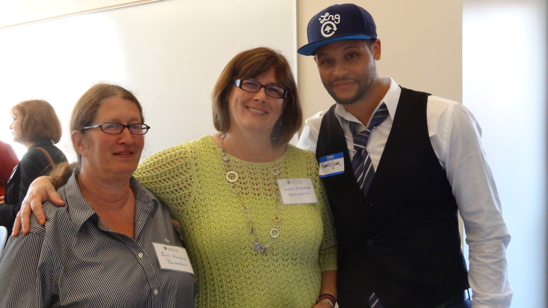 Joshua Abreu (far right), NECC retention specialist, with Rosa Talero, Evelyn Friedman, and Tracey Chalifour of Lawrence Community Action.