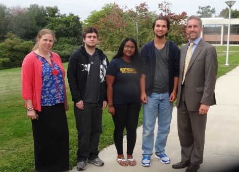 Marcy Yeager, director of cultural and international studies, students Brett Gates, Krishana Abrahim, Colin Sarff and Lane Glenn, NECC president.