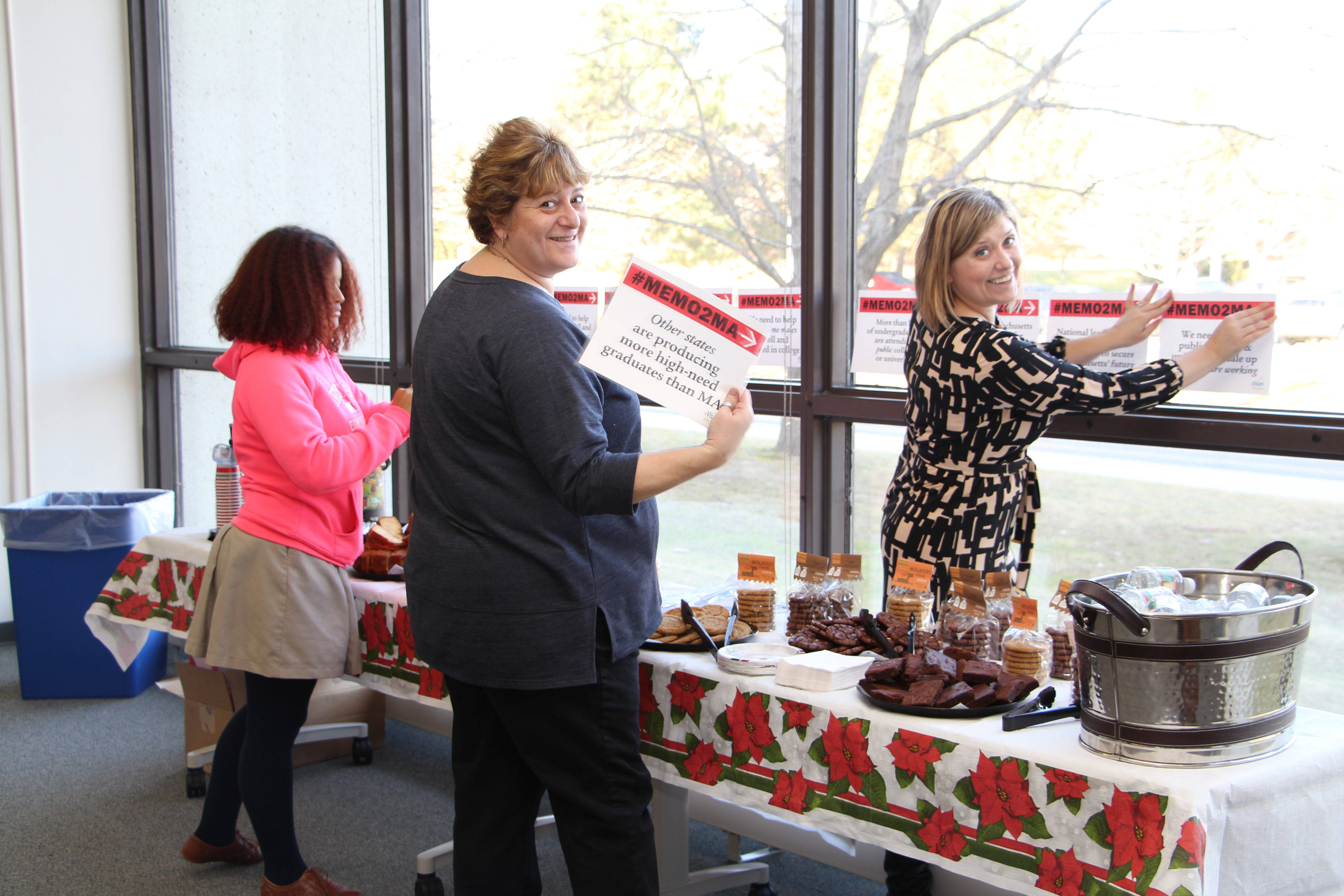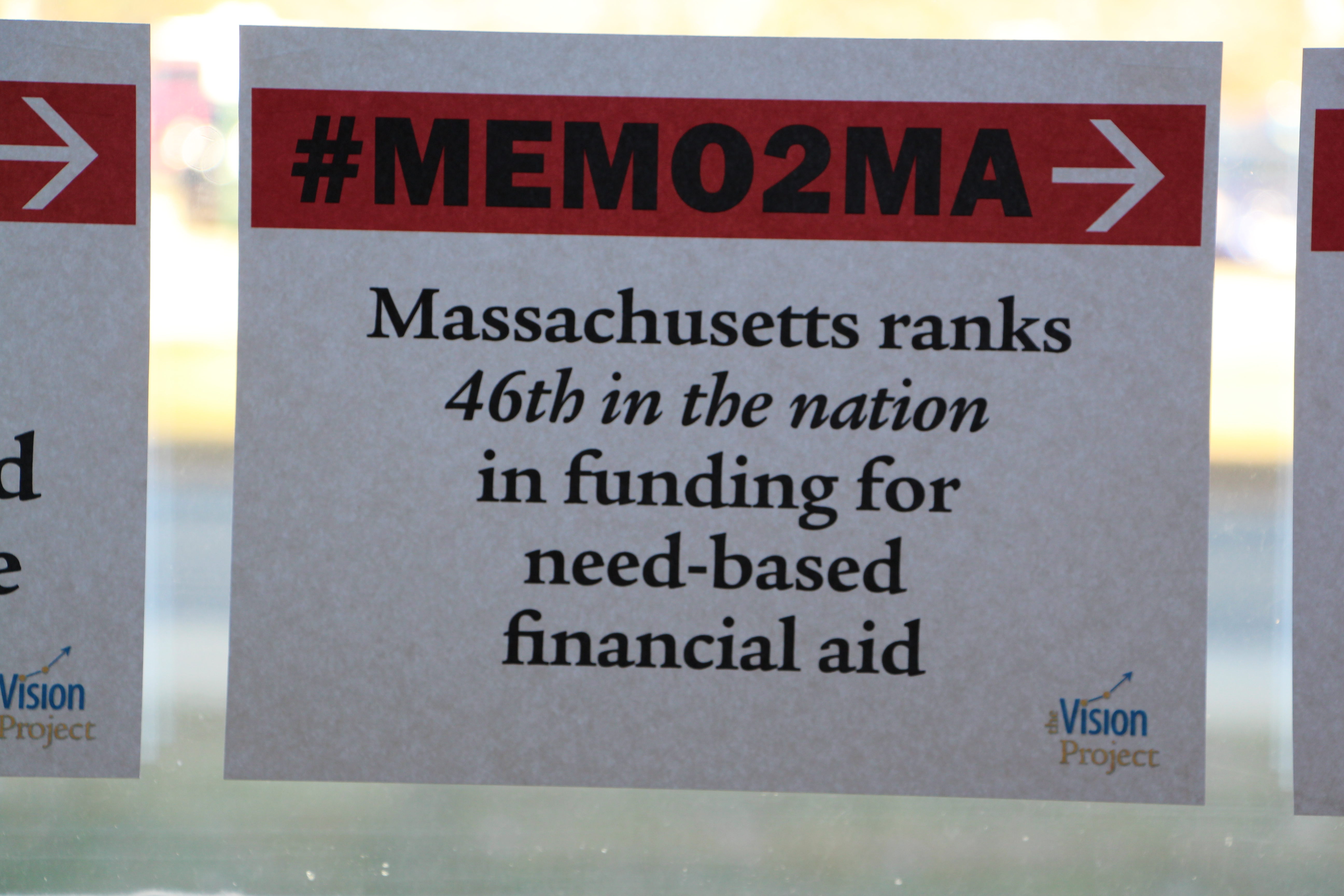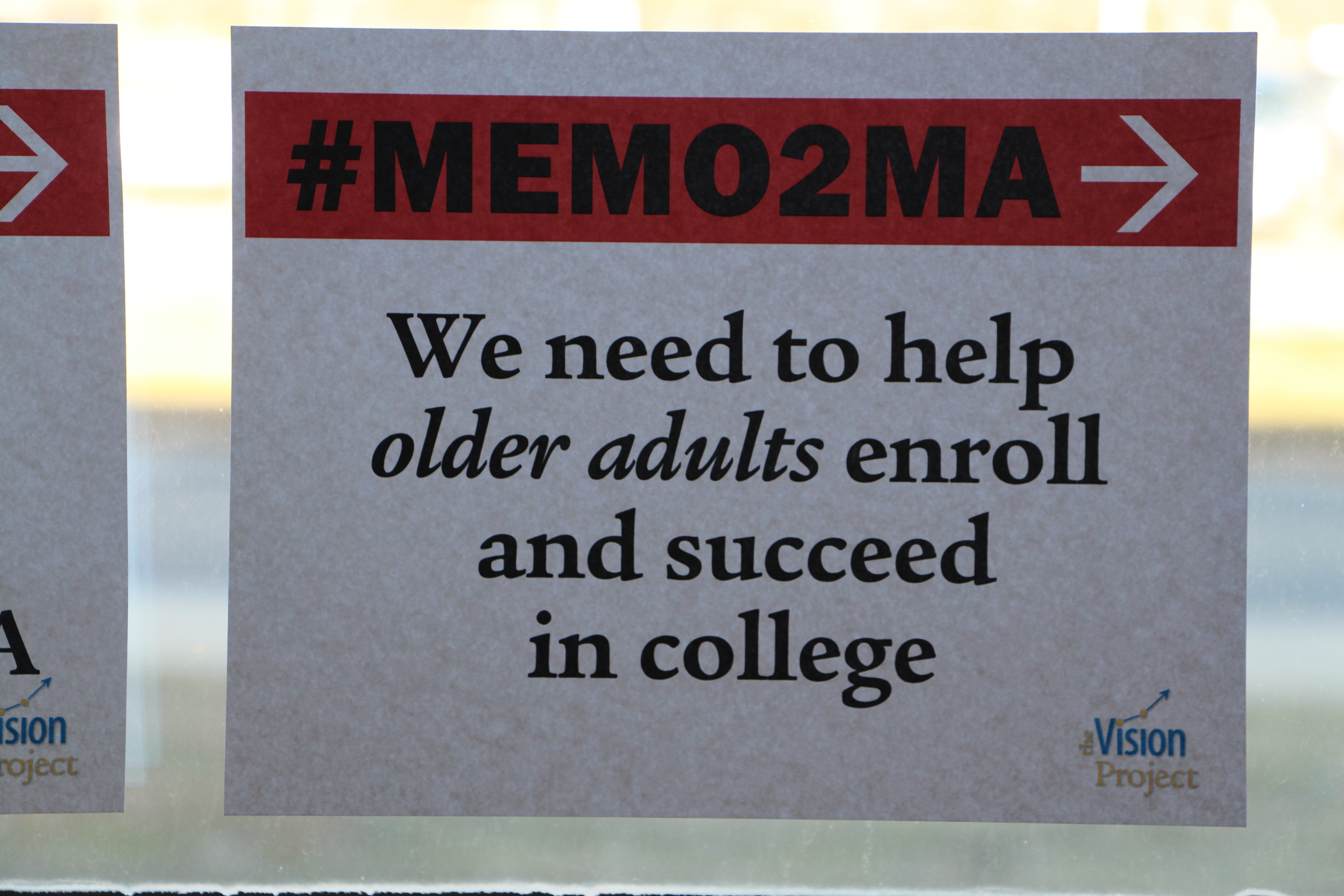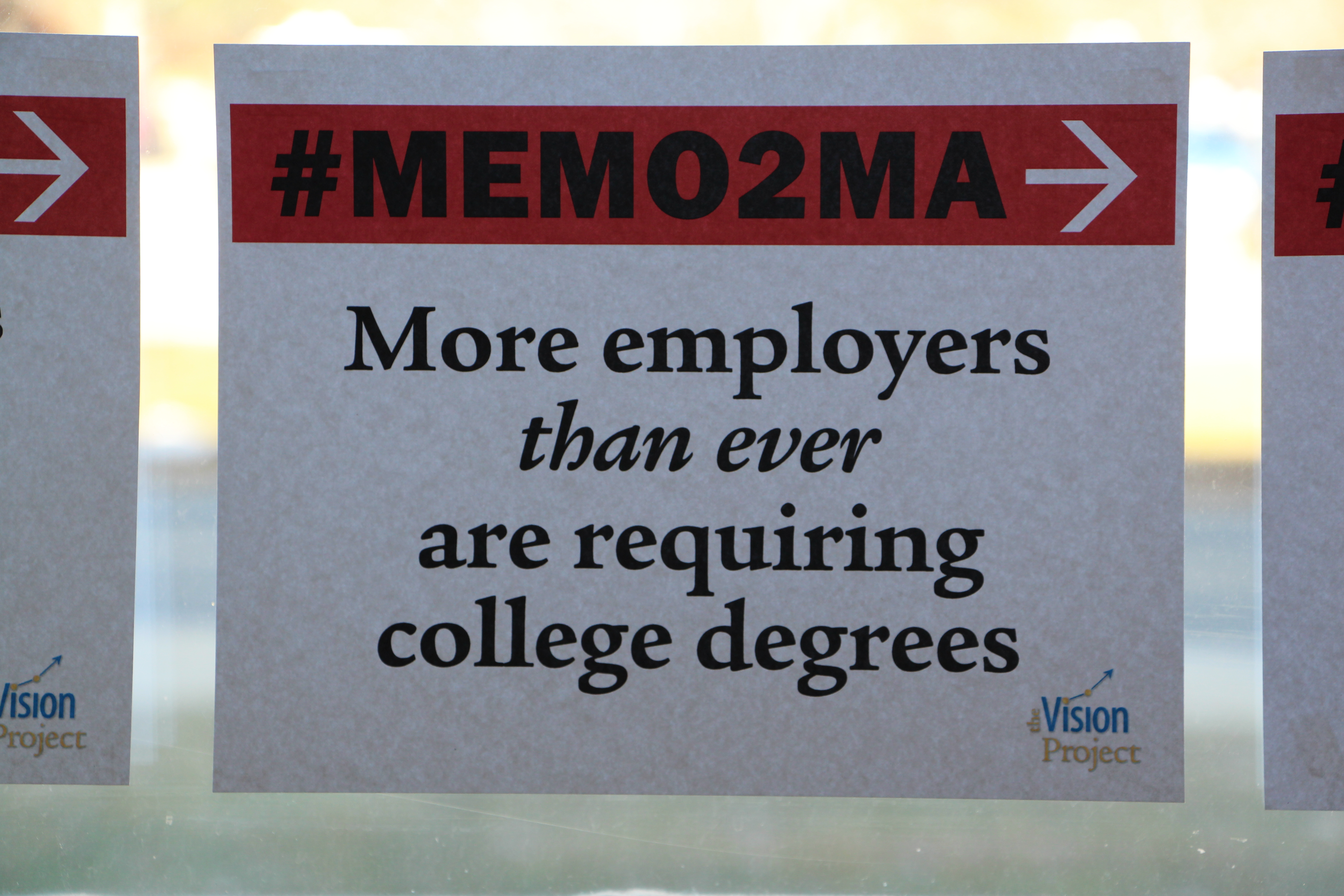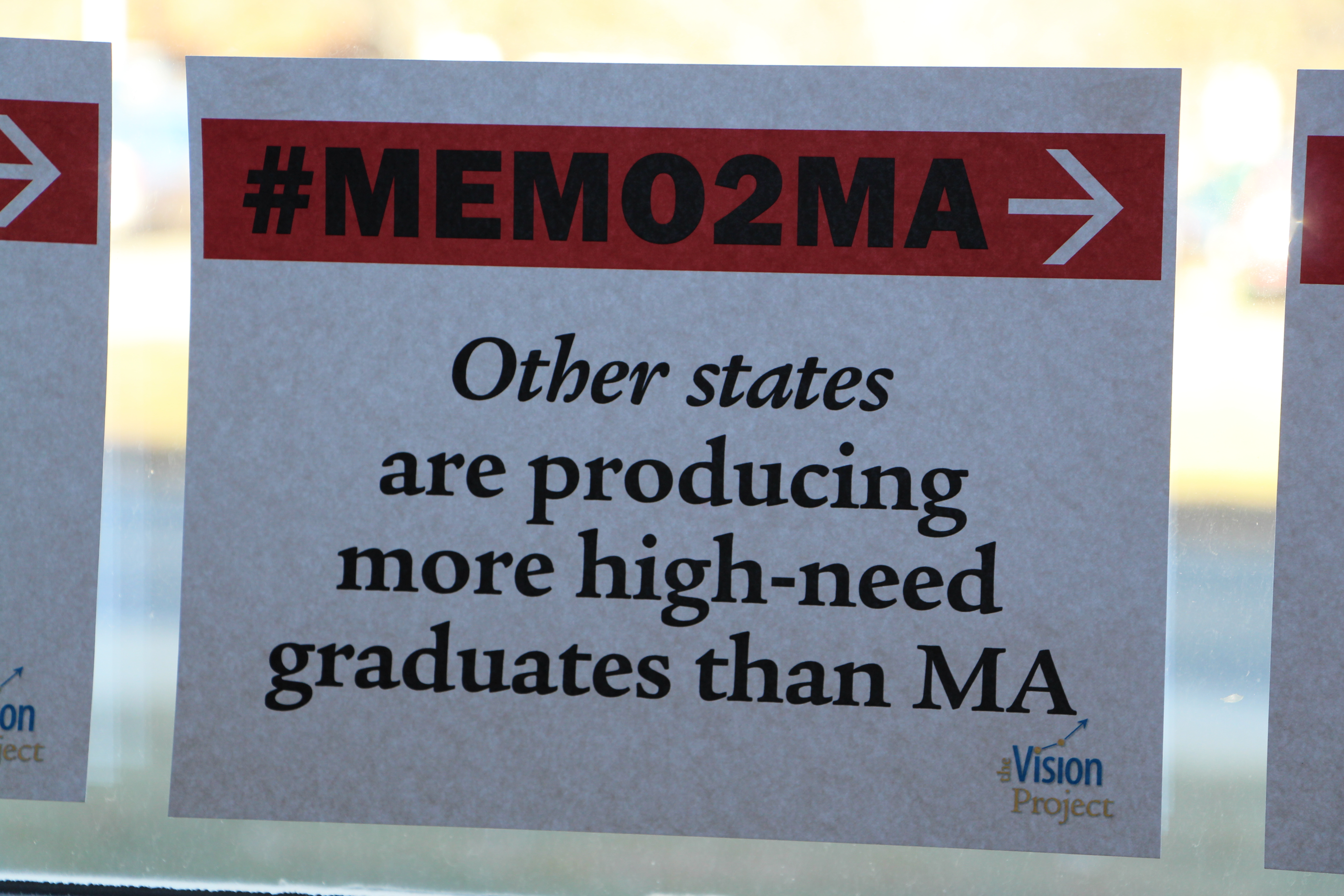 The DHE challenged all Massachusetts community colleges, and four-year colleges and universities to take photographs of individuals around campus holding placards stating “MEMO2MA.”