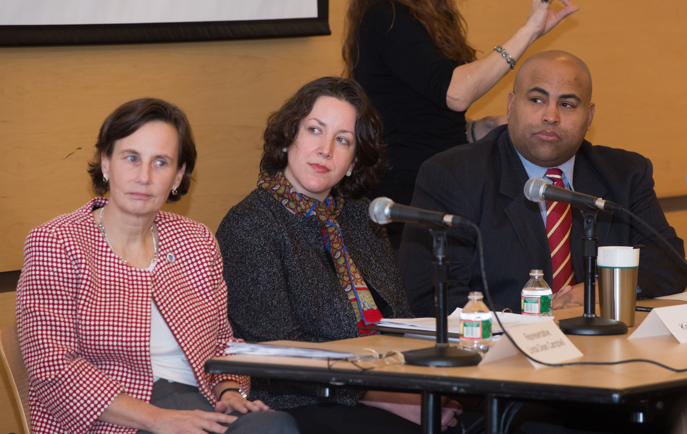 (Left to right) Representative Linda Dean Campbell, State Senator Kathleen O’Connor Ives, and Lawrence Mayor Dan Rivera discussed the state of higher education in Massachusetts and what it means for the NECC community during the Spring convocation.