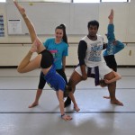 NECC dance student Nina Cabral of Pelham, NH, is held by fellow dancers during a modern dance that will be performed during the Stillpoint Dancers’ spring performance at Lawrence High School.