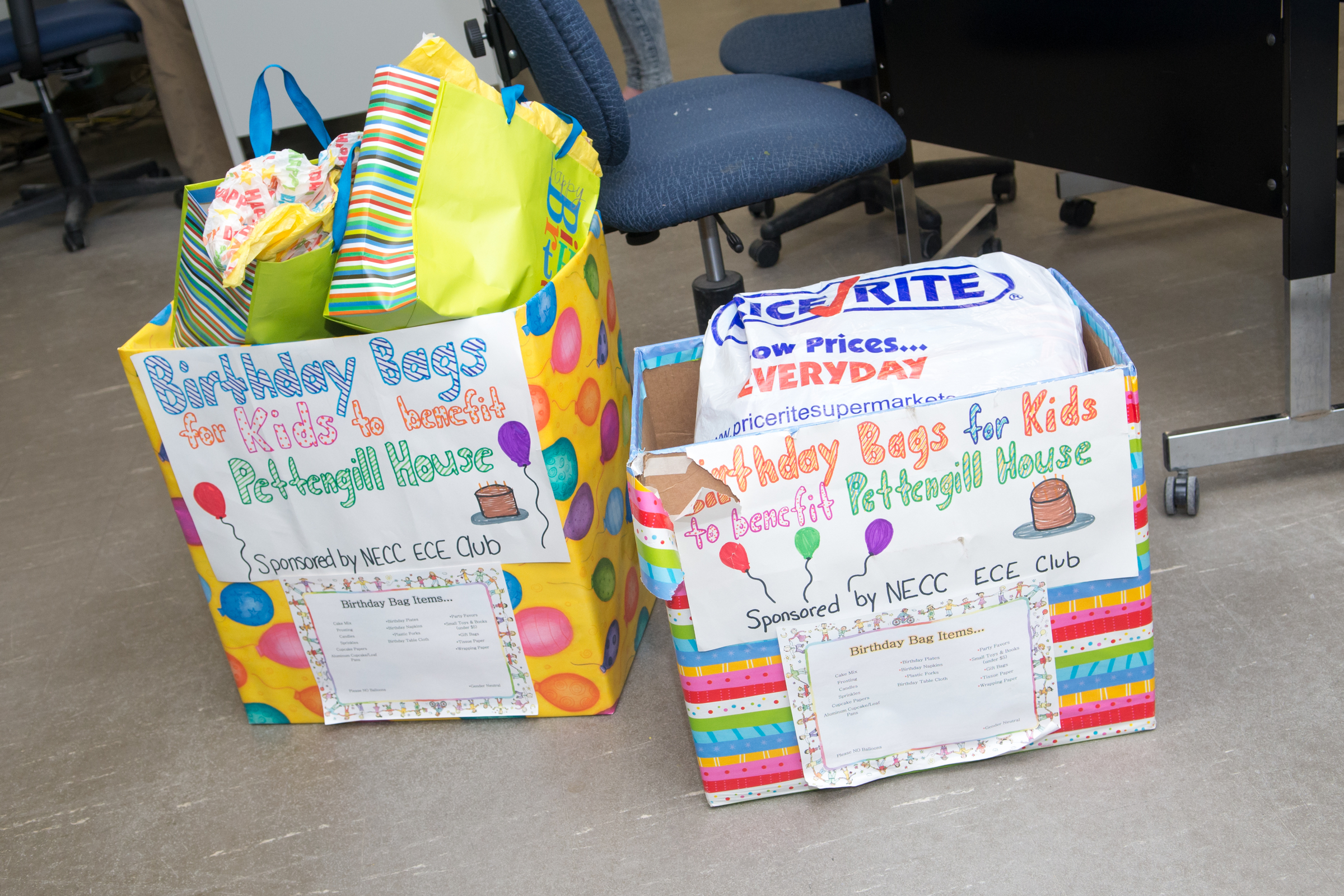 “Local food kitchens and food pantries offer staple food items, but they don’t usually offer birthday items” said Gail Feigenbaum, director of NECC’s ECE program.