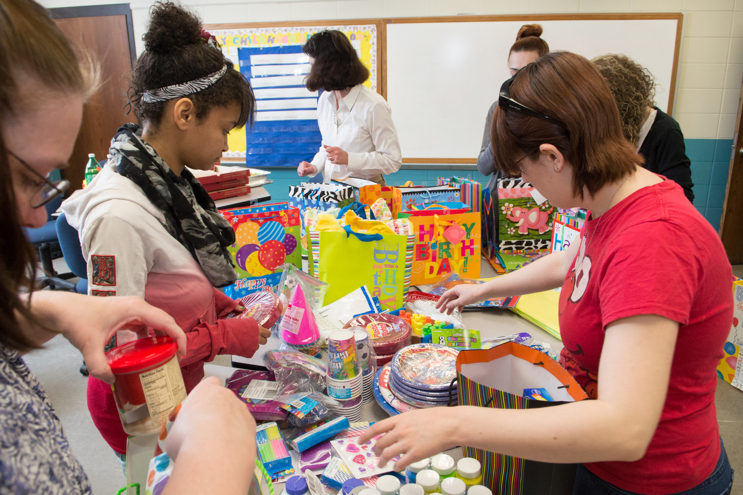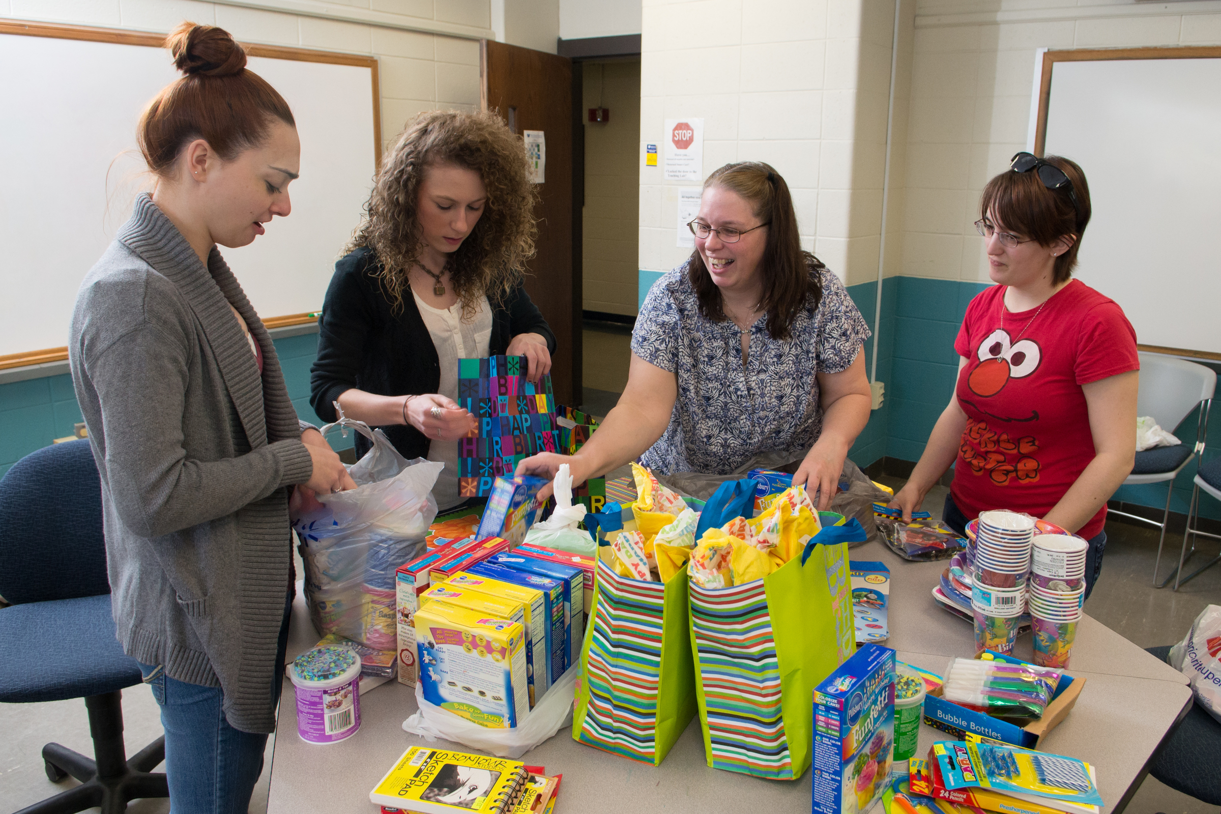 ECE Club members were able to fill 18 gender neutral “birthday bags” including one gluten-free, with boxes of cake mix, cans of frosting, thematic paper plates and napkins, birthday candles, and party favors. The items were placed in large, decorative birthday bags topped with colorful tissue paper and will be available to families in need who have a birthday to celebrate.