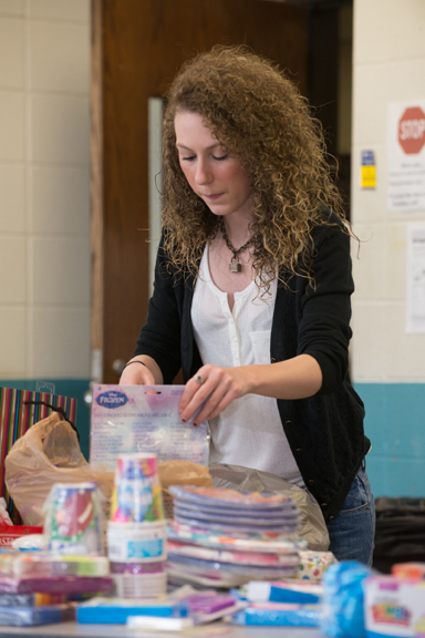 Sydney Tatoyian of Methuen, a member of NECC’s Early Childhood Education Club, helped prepare birthday bags for the families at the Pettengill House in Salisbury.