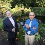 Glenn Prezzano, editor and publisher of Merrimack Valley Magazine, (L) and Larry McHugh, who hosted the Women of NECC June event along with his wife Linda, chat during the event.