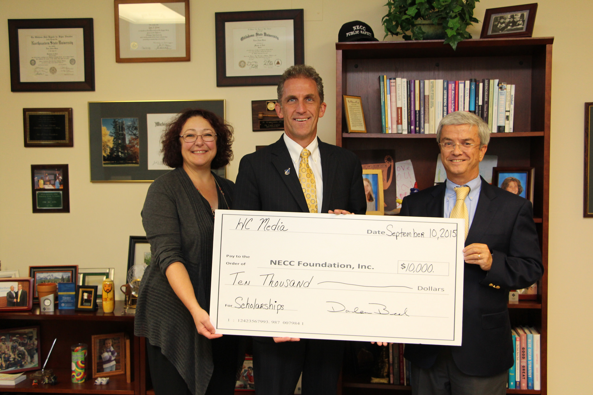 For the fourth year running, Haverhill Community (HC) Media has donated $10,000 to Northern Essex Community College for scholarships for NECC students who are graduating with an associate degree in communications and are continuing on for a bachelor’s degree.