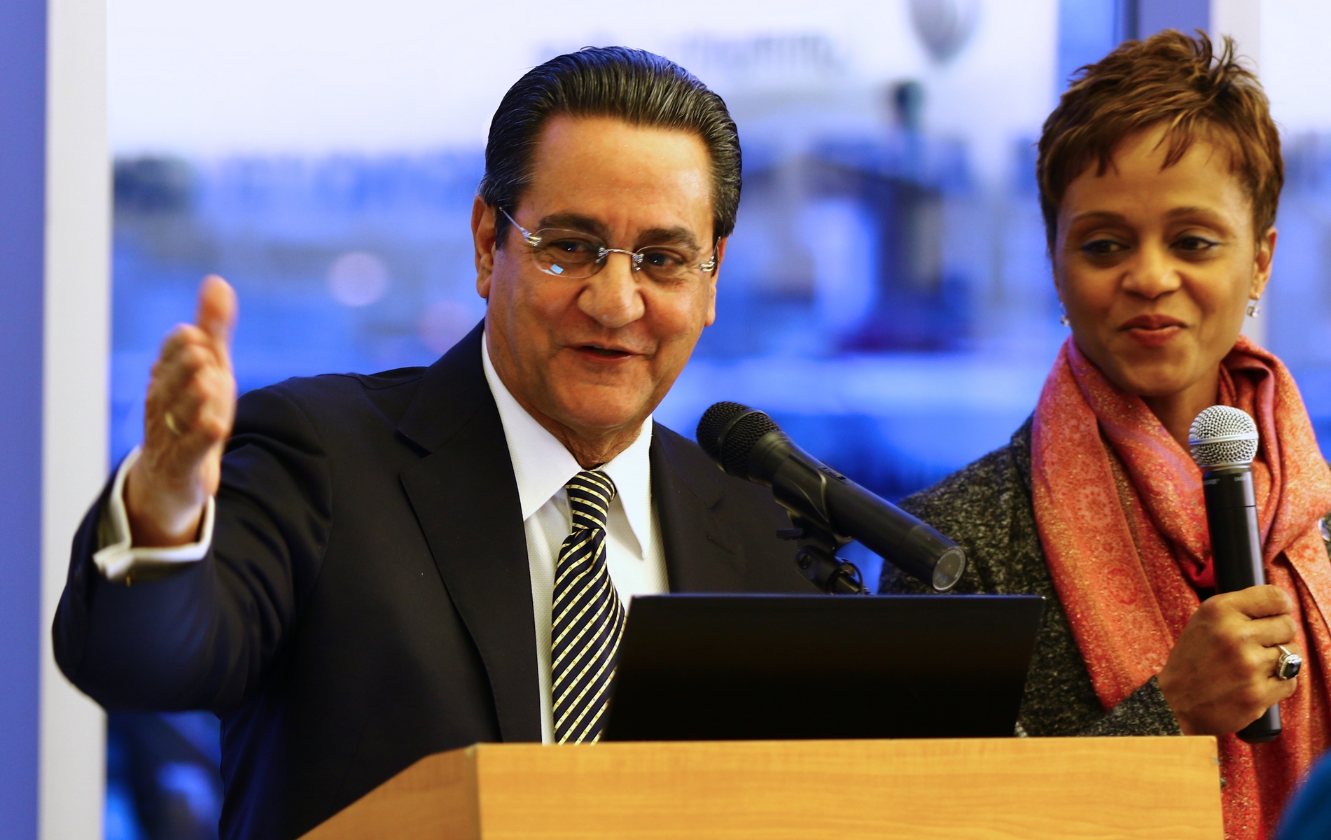 - Dr. Clara Benedicto, general director of collaborations and national and international relations Universidad Autónoma de Santo Domingo, and Lawrence Mayor Dan Rivera