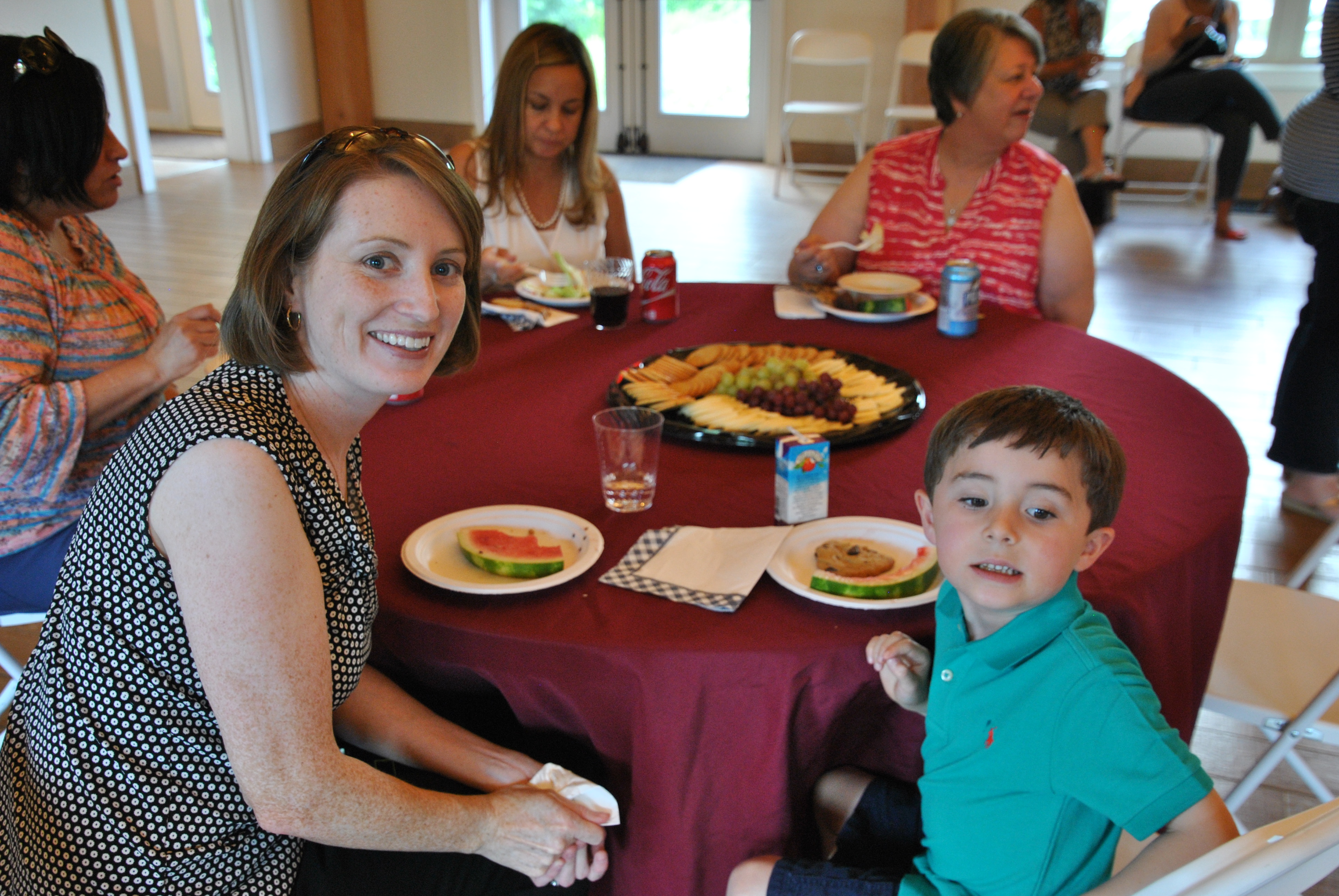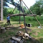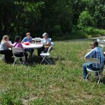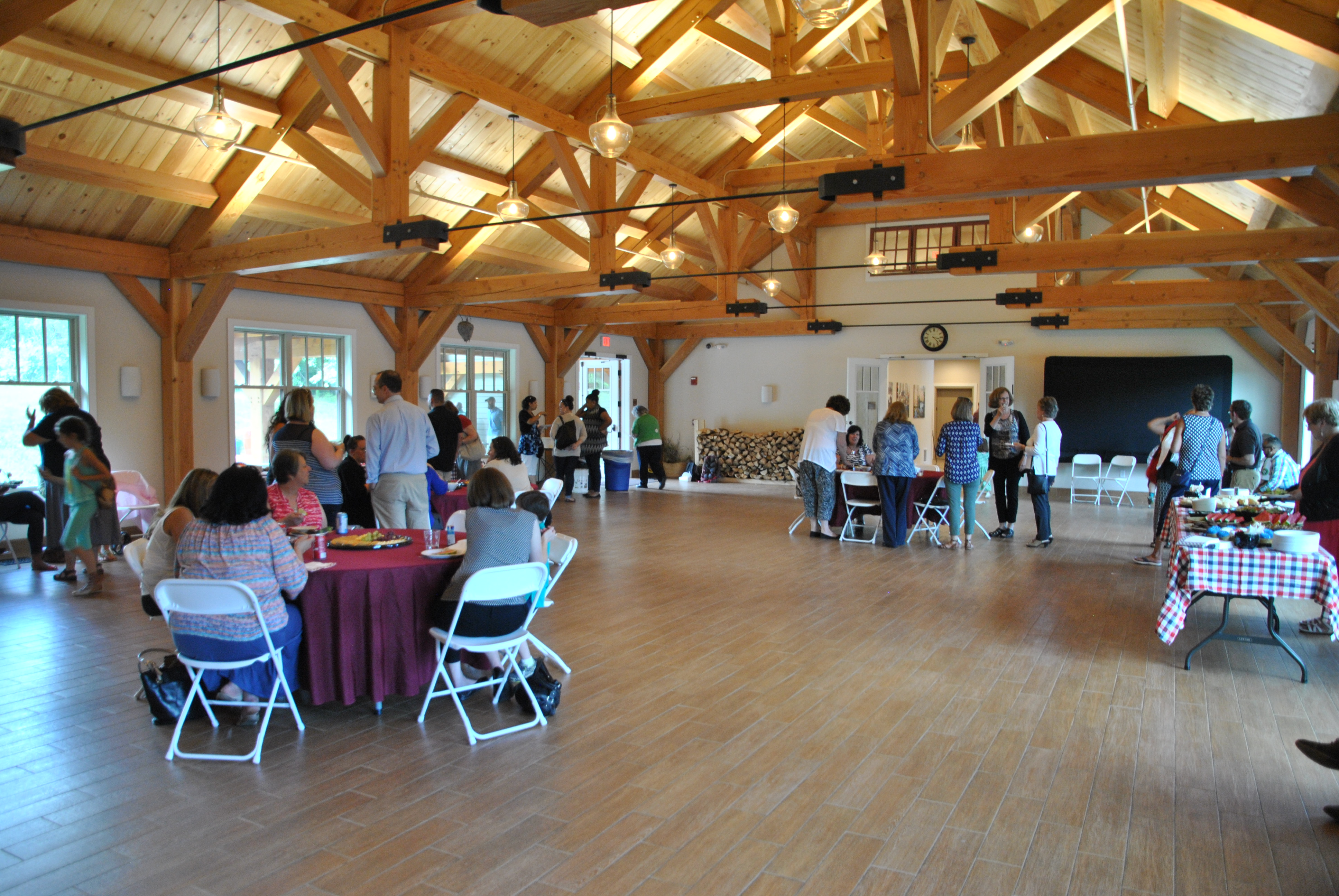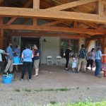 While snacking on sandwiches, fresh fruit, and cookies while sipping cool drinks, attendees toured the property. Outside, Kristina Ellis, education staff member at Quarrybrook, who has been involved with Quarrybrook development since its inception, tended a log-cabin fire where she was baking rolls using two heat transfer ovens.