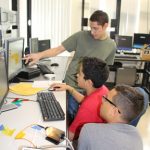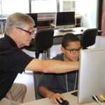 - Technology Camp instructor Jay Fallon helps out Emil Pinales-Santana of Methuen.
