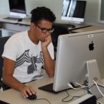 - Joshua Robles of Lawrence works on a project during Technology Camp.