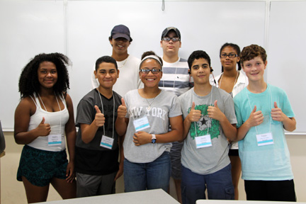 The Microscopes – campers in Engineering Professor Paul Chanley’s class give a thumb’s up at the end of their day at Technology Camp.