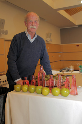 Pennycress, Lady’s Mantle, Cat’s Tail, Free Spirit Roses, and cabbage were just a few of the tools of the floral trade that Bert Ford of Ford Flower Company LLC in Salem, NH, used to create nearly a dozen autumnal and holiday center pieces and door displays during Northern Essex Community College’s Women of NECC membership tea on Friday, October 21 in the Hartleb Technology Center on the Haverhill campus.