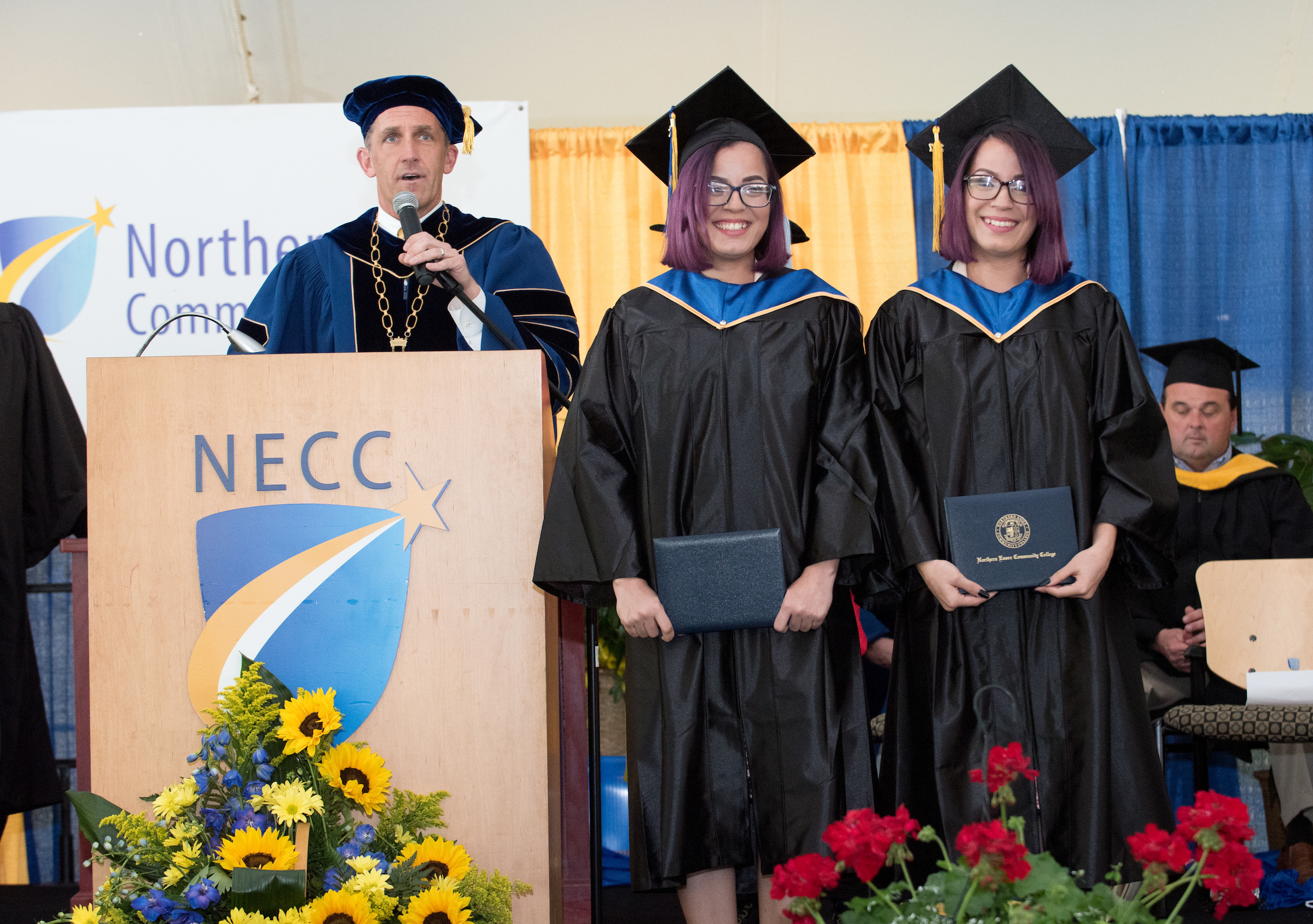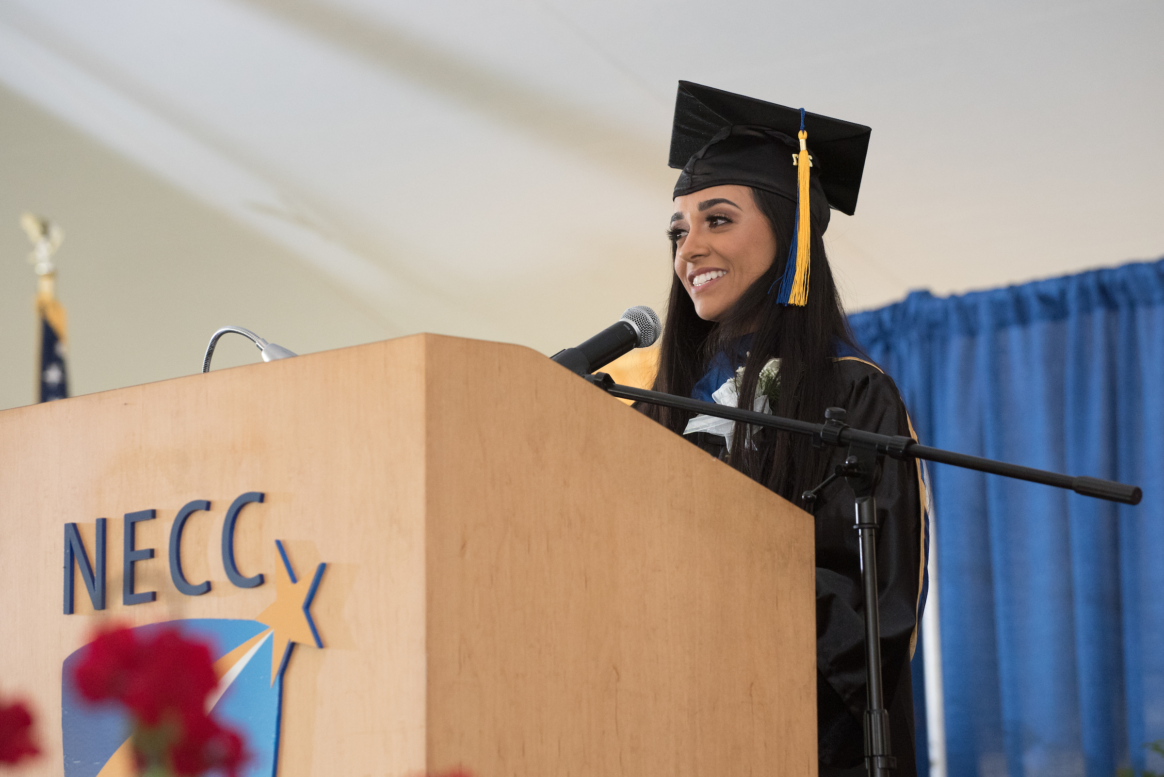 The commencement proceedings opened with the national anthem sung by NECC alumna Carli Hamilton of Plaistow, N.H., who is currently attending Berklee School of Music.