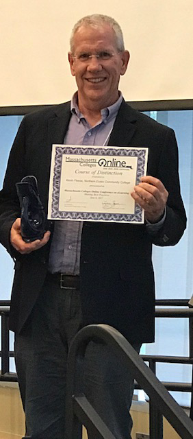 The NECC Professors who designed the courses, Sheila Kane of Medford, and Kevin Fleese of Manchester, New Hampshire, received the 2017 Massachusetts Colleges Online (MCO) Course of Distinction (COD) Award. The award is given to state faculty who develop and teach innovative online and blended courses that are representative of the best uses of eLearning instructional tools to enhance student success.