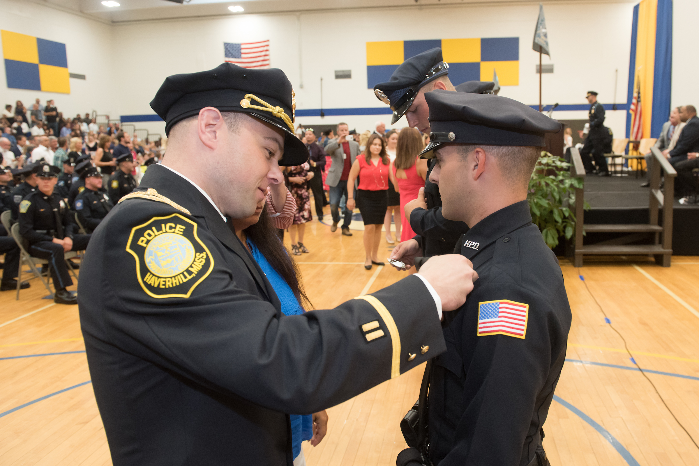 Lawrence Mayor Daniel Rivera said that being a police officer today is not easy. As officers, he told them, they will be dealing with individuals with mental health issues, opioid issues and homelessness. He closed by quoting selected lines from British Nobel laureate Rudyard Kipling’s “If”…”If you can keep your head when all about you are losing theirs and blaming it on you… If you can talk with crowds and keep your virtue, or walk with kings—nor lose the common touch…”.