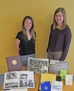 NECC Librarians Rachel Oleaga (left) and Laura Mondt (right) curated the exhibit that celebrates Northern Essex’s early years. It will be displayed at the Buttonwoods Museum beginning September 2.