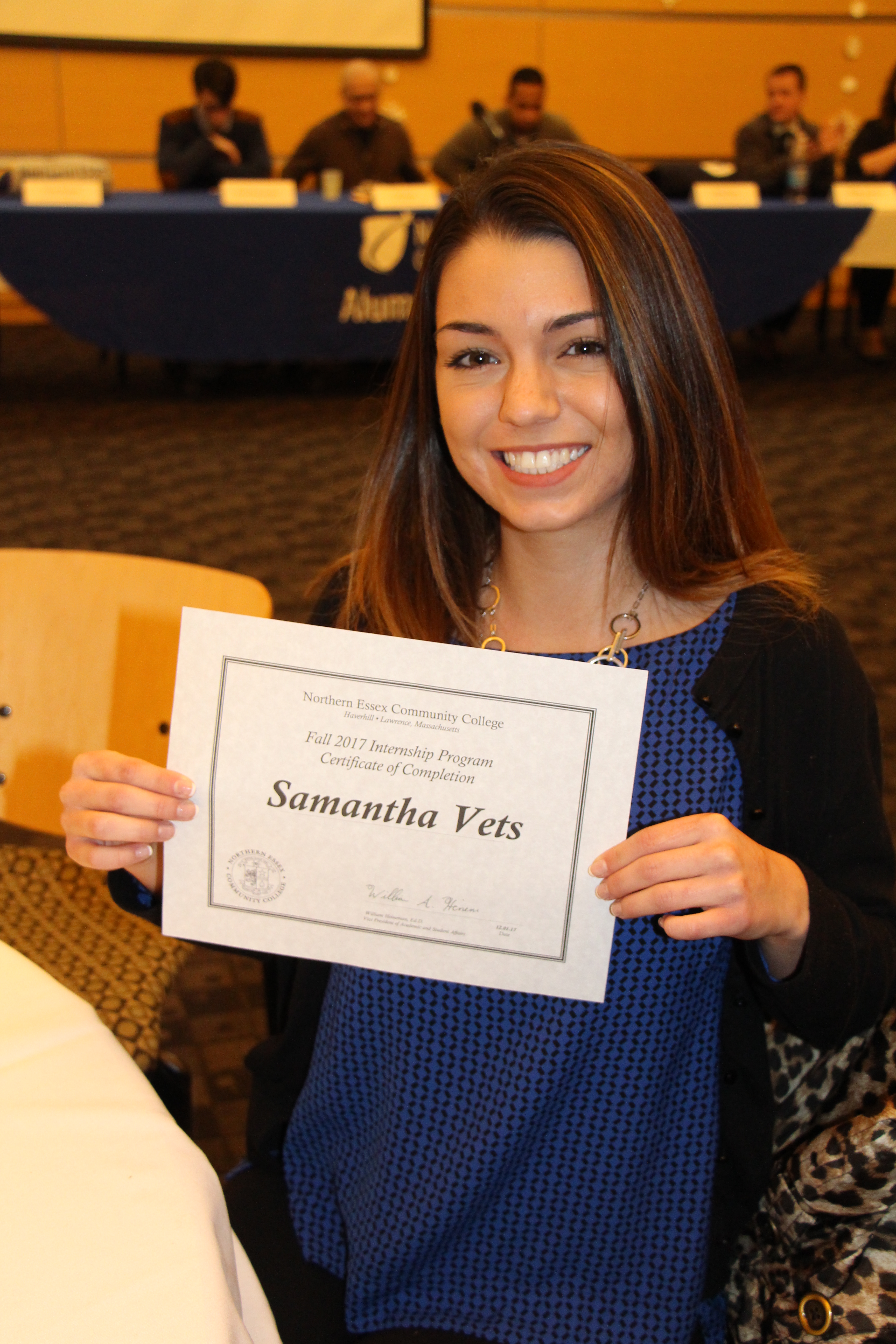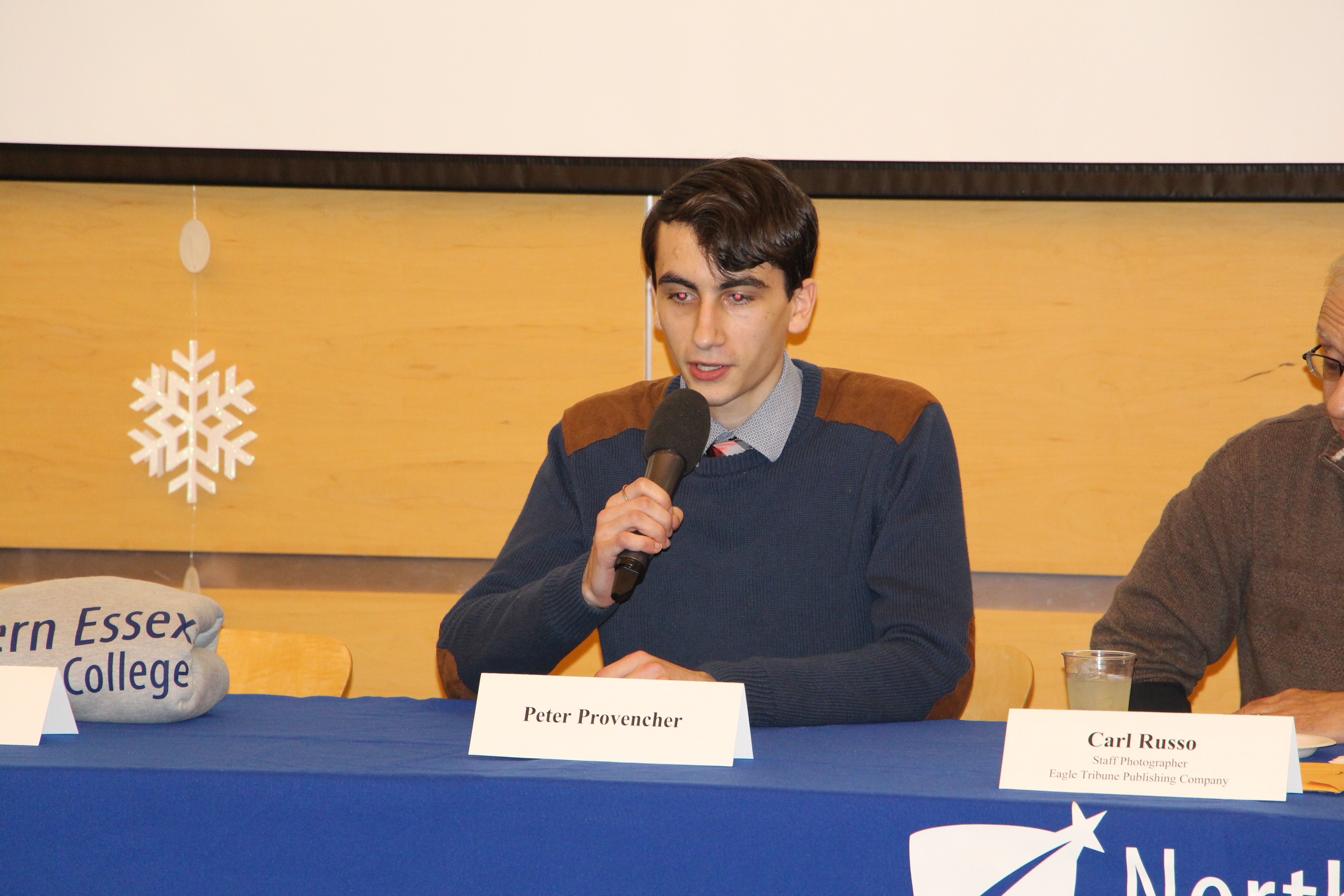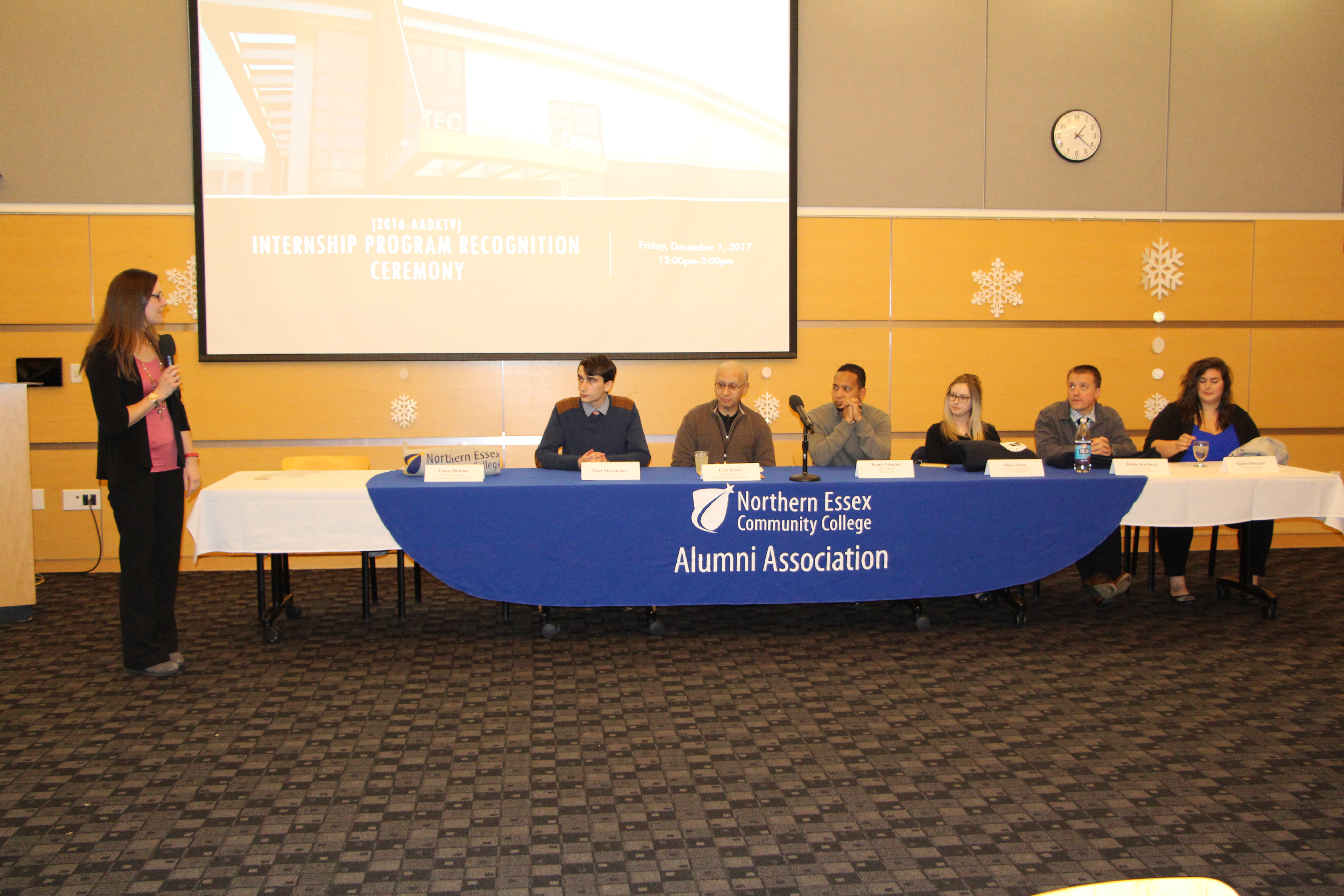 The presentations were followed by a panel discussion of NECC alumni including Peter Provencher, a senior at UMass Lowell; Carl Russo, a staff photographer at the North of Boston Media Group; Joanel Vasquez, a PhD candidate at UMass Lowell; Alison Posey, a finance and accounting associate at a venture capital group; Bobby Karlberg, an account manager at Verizon; and Rachel Burgard, a relationship strategist.