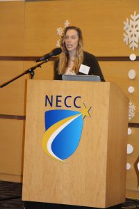 Cleo Brigham, who also presented, interned at NBC Boston. She landed the gig after meeting NBC Boston lead meteorologist Matt Noyes, who was NECC’s guest graduation speaker last May. After two months of persistence she was hired for the Special Projects Unit where she transcribed video footage for reporters and when necessary assisted photographers and researched stories.