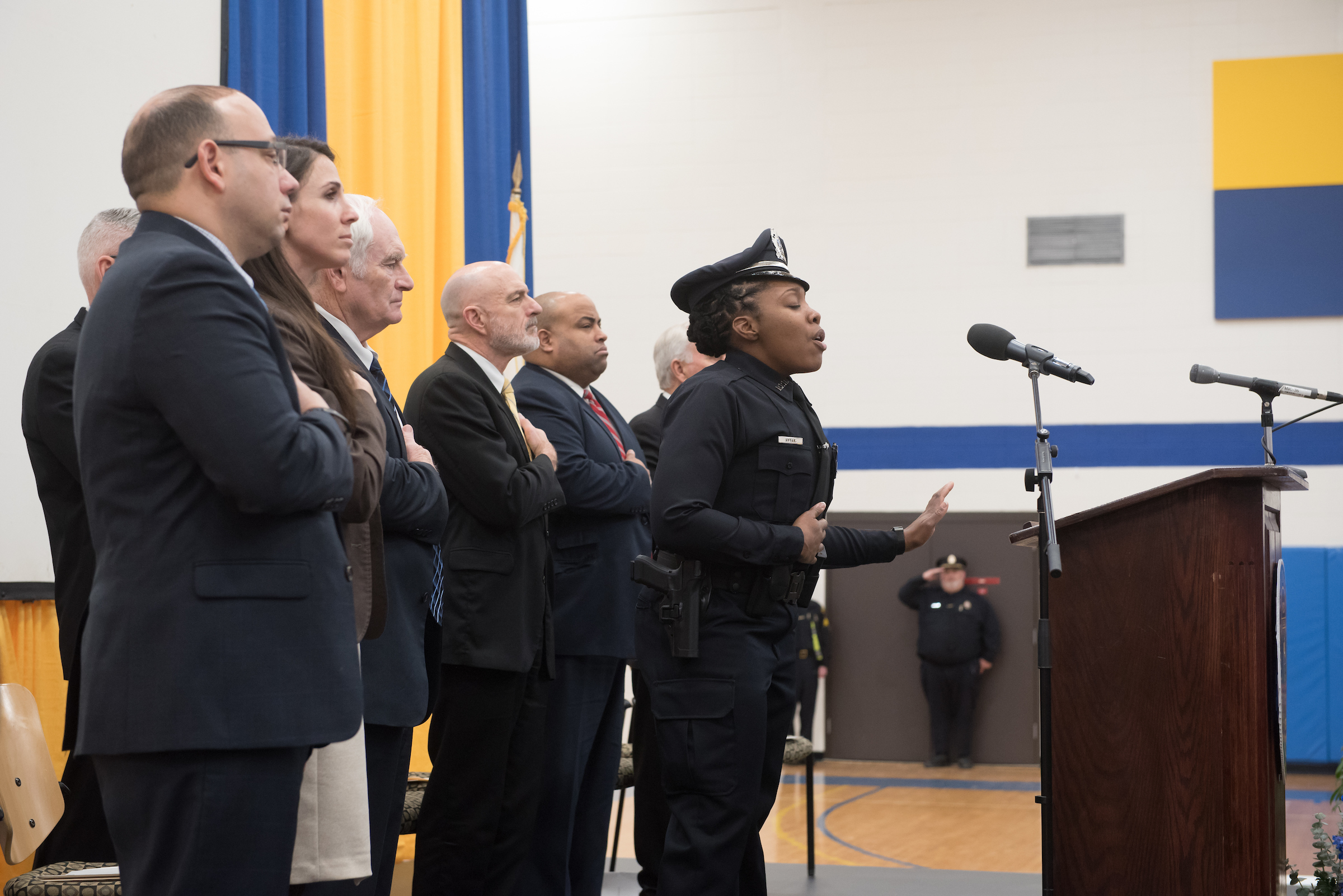Student officer Izinna Lytle of the Pittsfield Police Department sang the national anthem.