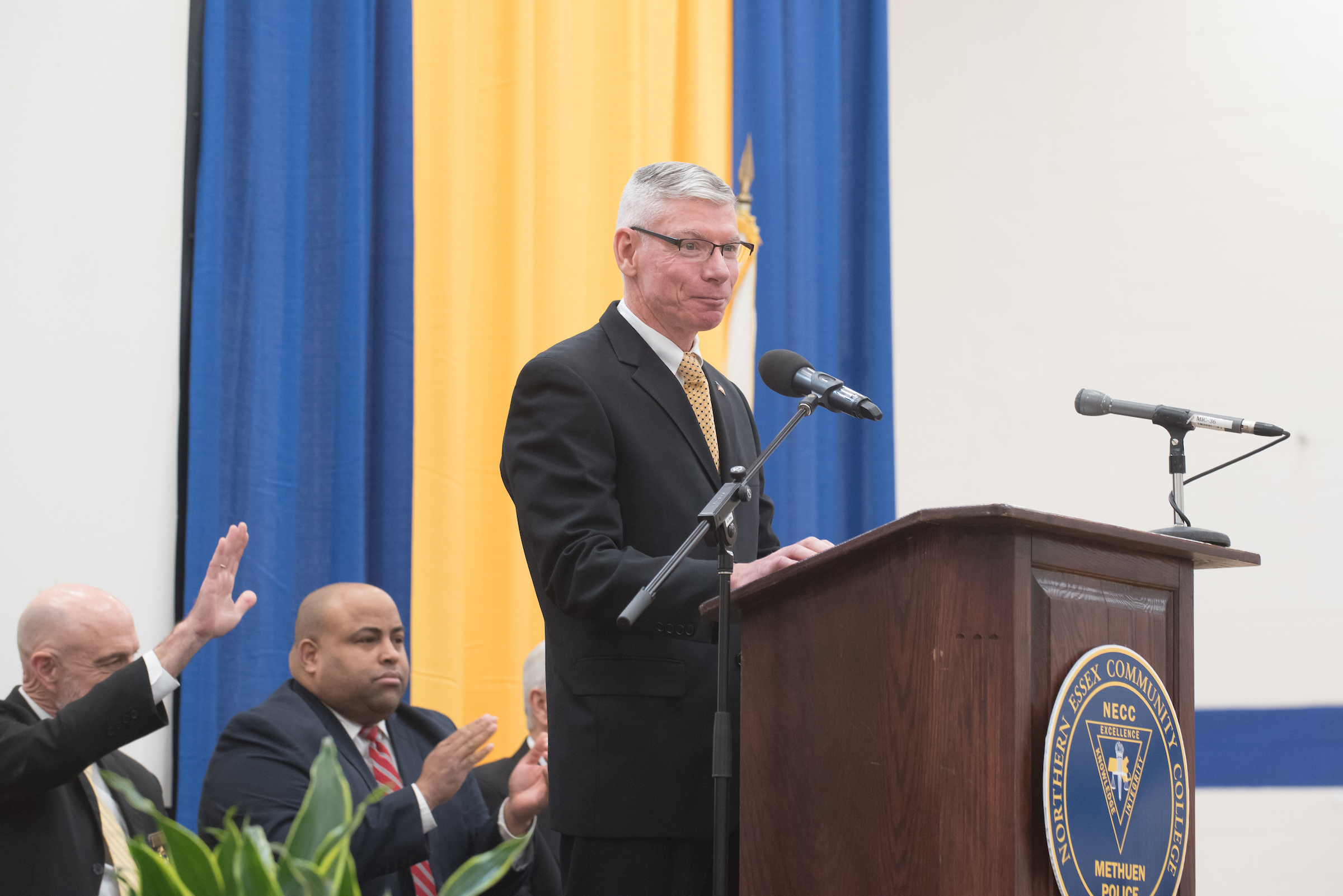 Fleming lauded NECC President Lane Glenn, who was unable to attend the ceremony, for recognizing the need for training first responders and taking the lead in opening the campus to the academy, which now uses the gymnasium, classrooms, and fields.