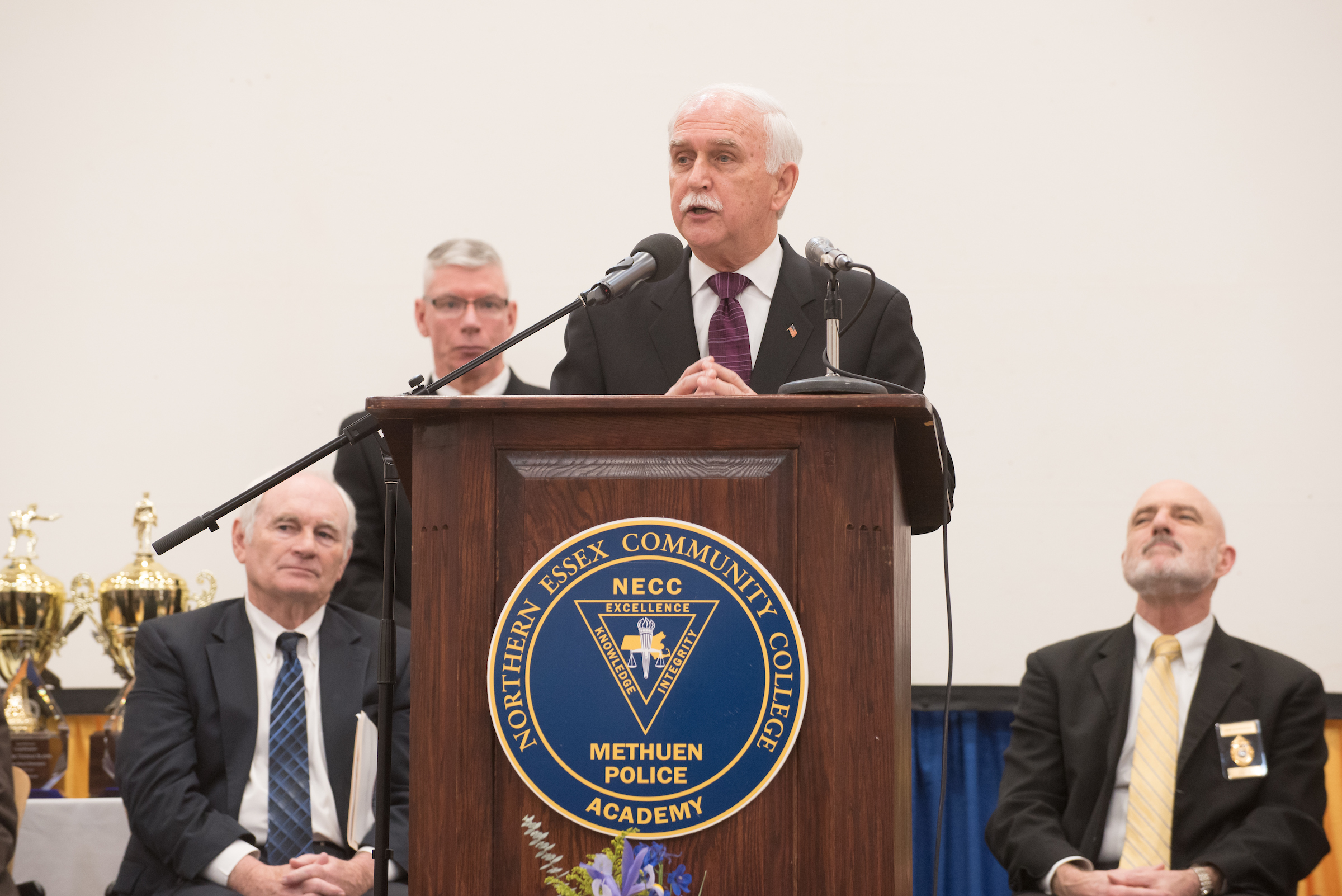 George Moriarty, Executive Director, Center of Corporate and Community Education, spoke on President Glenn’s behalf “As you know, today there are so many challenges facing police officers …it’s important to have a connections between higher education and the police academy.
