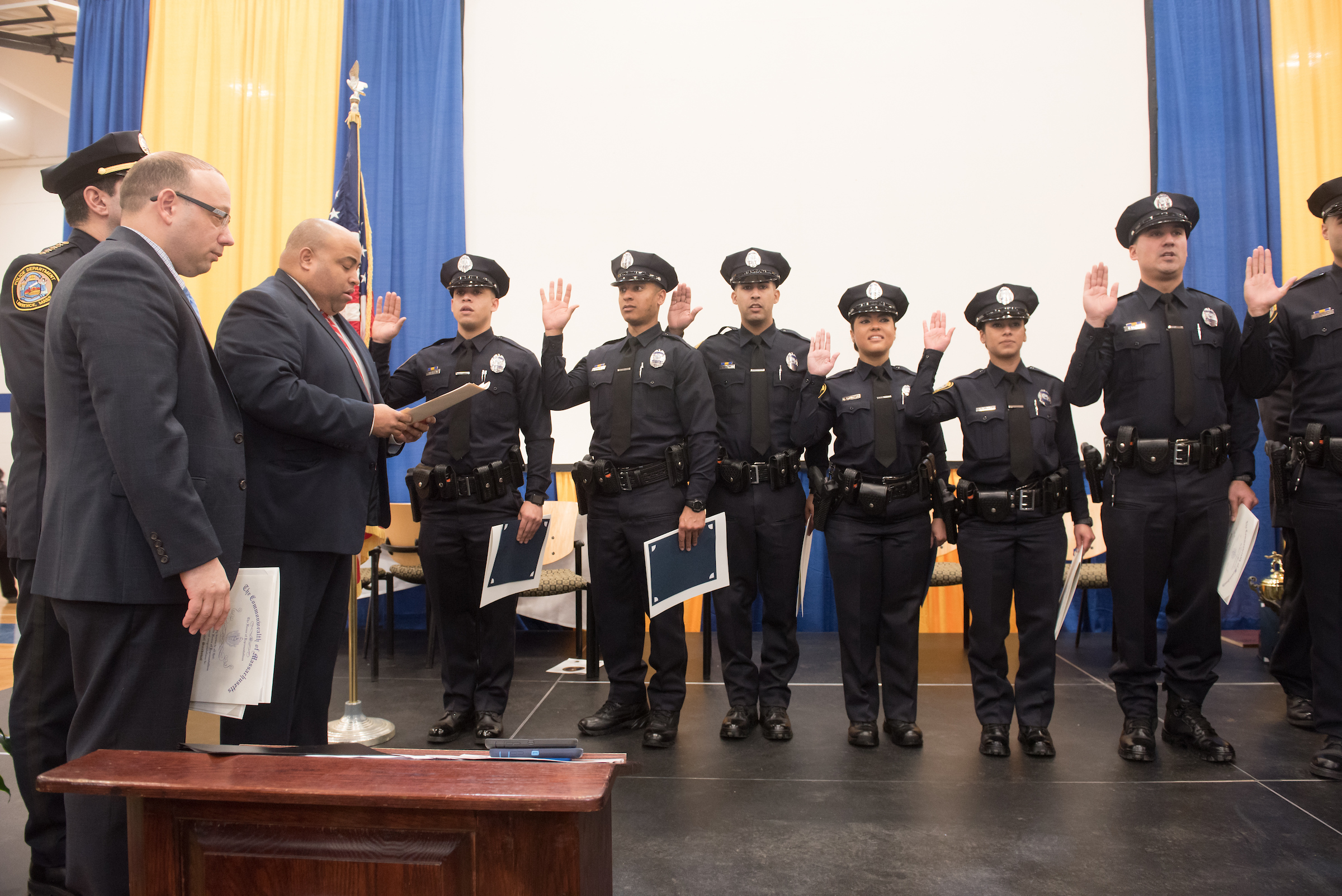 Lawrence Mayor Daniel Rivera, who watched as seven of Lawrence’s police officers graduated, commended the academy for producing “quality police officers”. He commended the graduates on their career choice. “They have the most difficult job in America.”