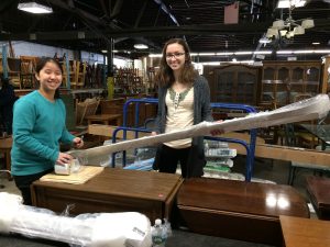 (Left) Trang Phan, an international student from Vietnam, who currently lives in Haverhill, and Kristen Adams of Groveland volunteered in the Lawrence Habitat Restore during Northern Essex Community College’s alternative spring break activities.