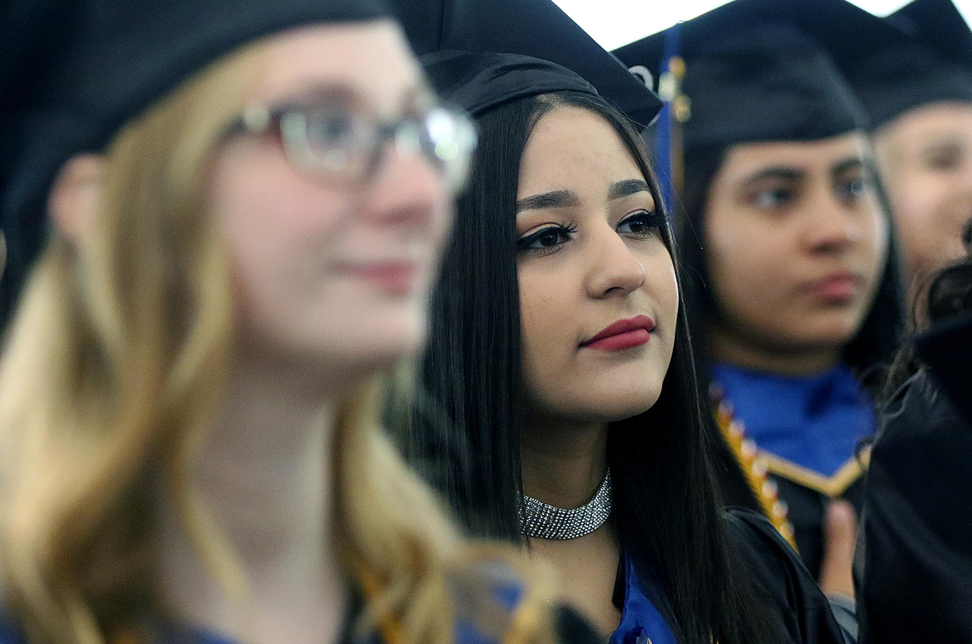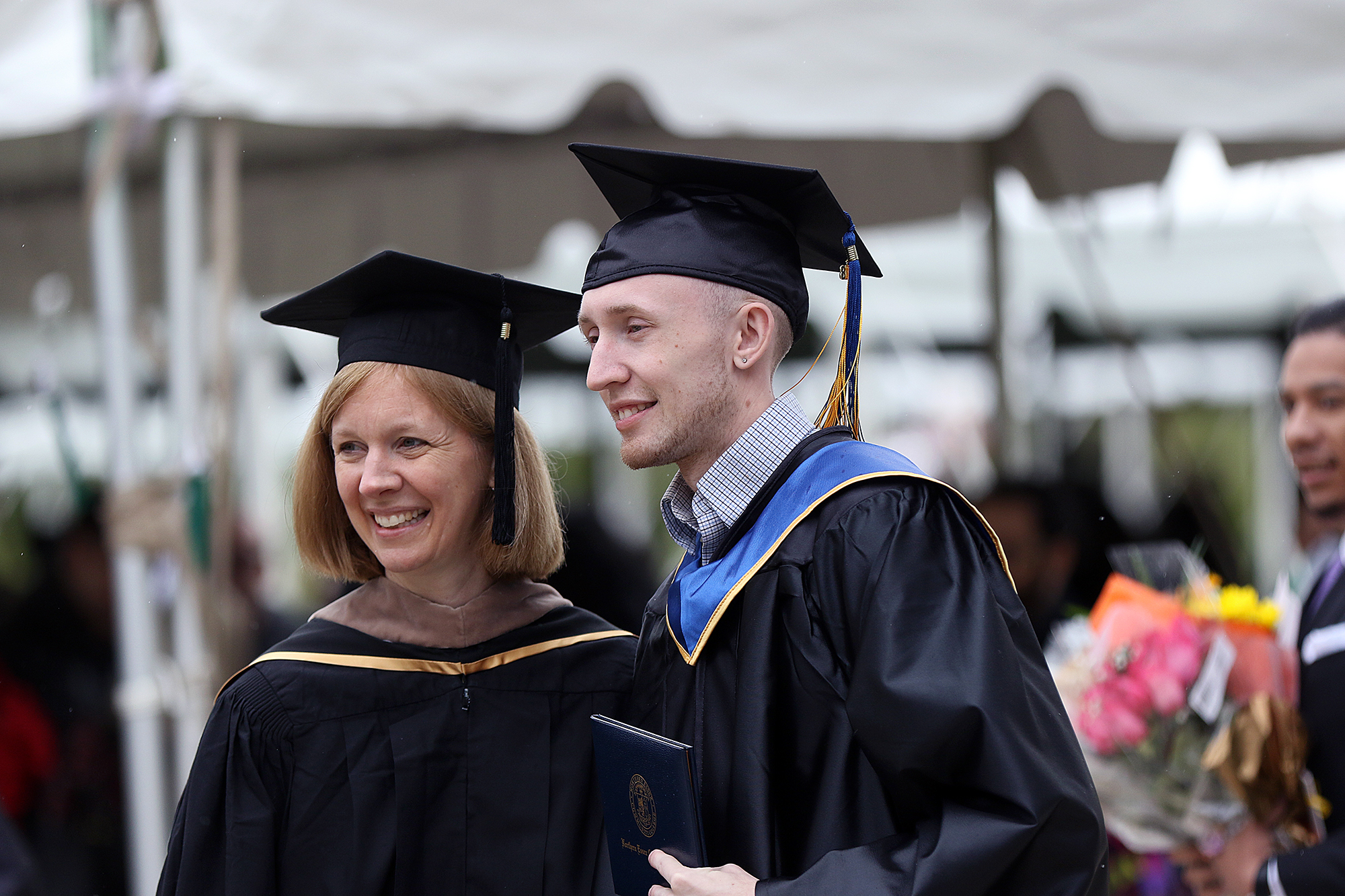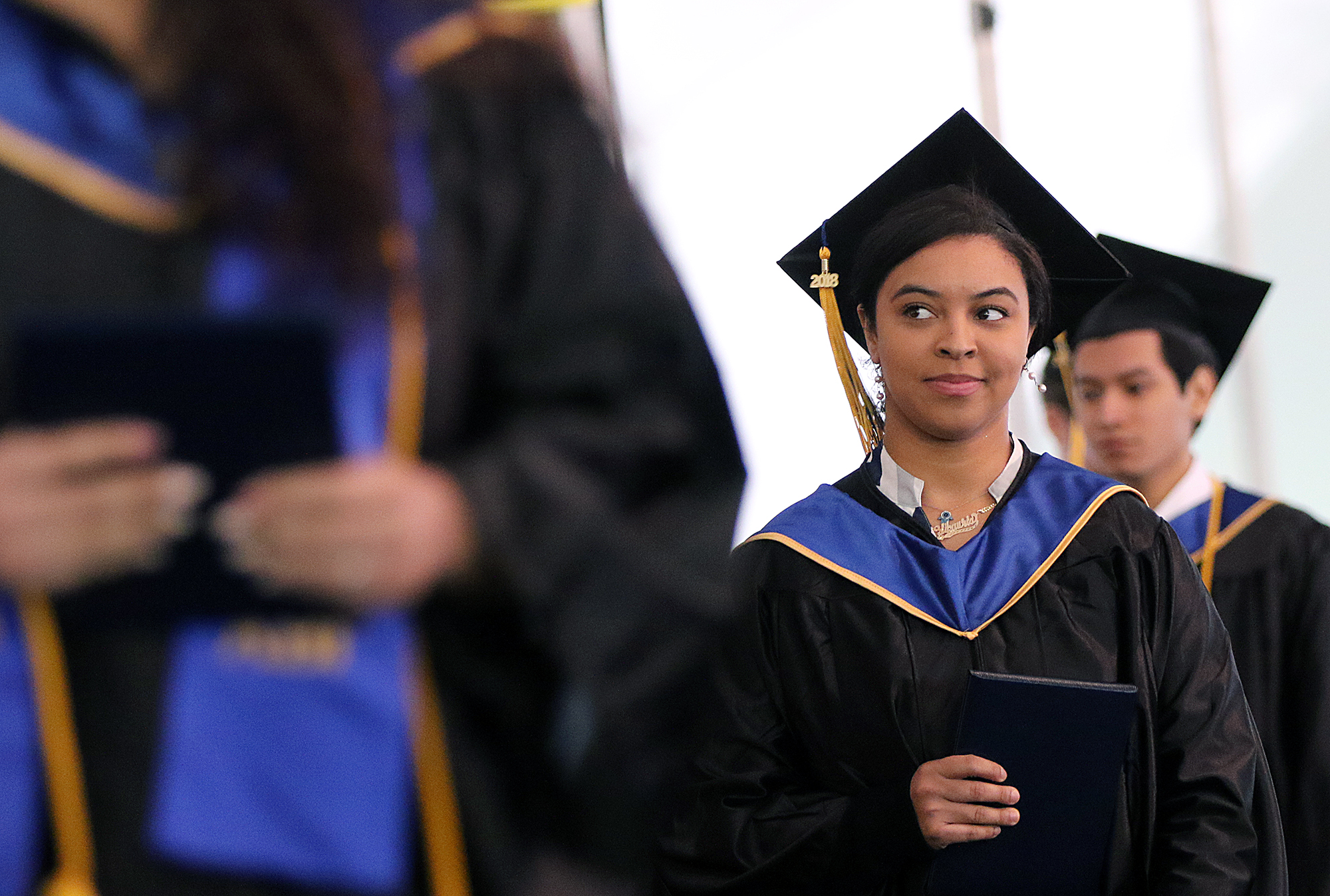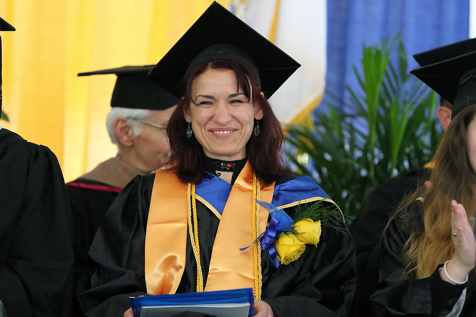 Student speaker Malina Popa, a native of Romania, who earned her degree in engineering science, told her fellow classmates, “My fellow grads, I applaud you for your amazing achievement. Many of you had to face obstacles that might have seemed insurmountable, challenges such as poverty, problems with your immigration status, limited English proficiency, or lack of support. However, you all rose to the occasion, every single time…”