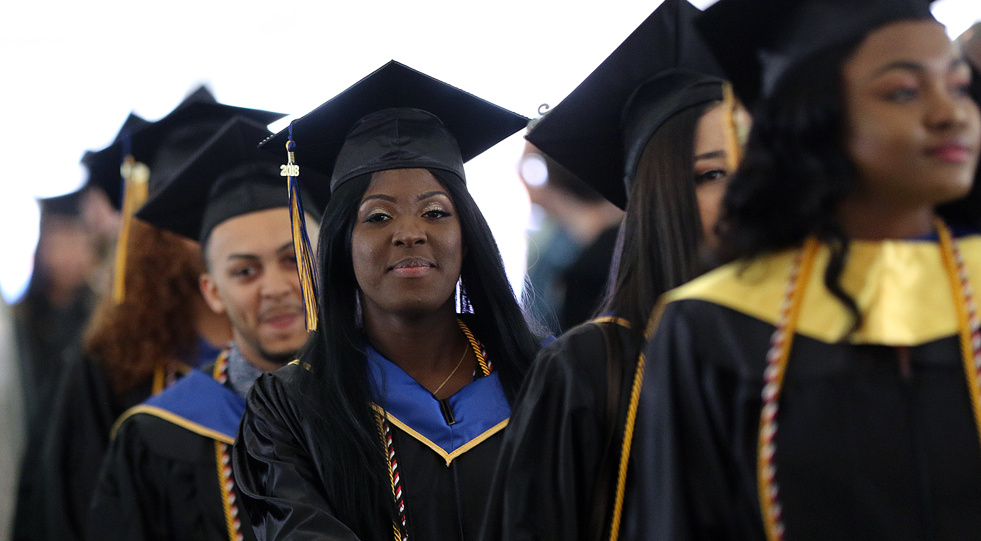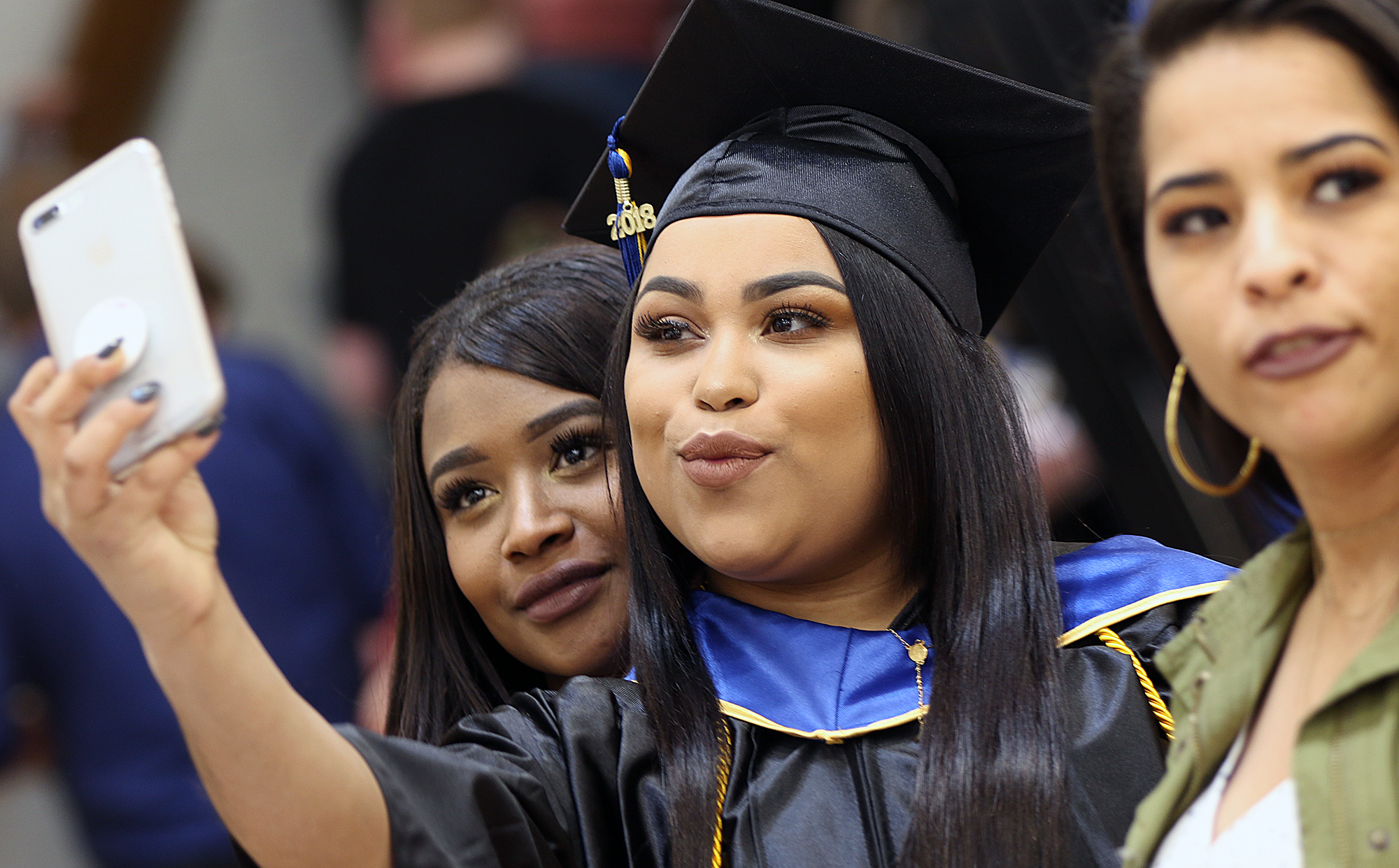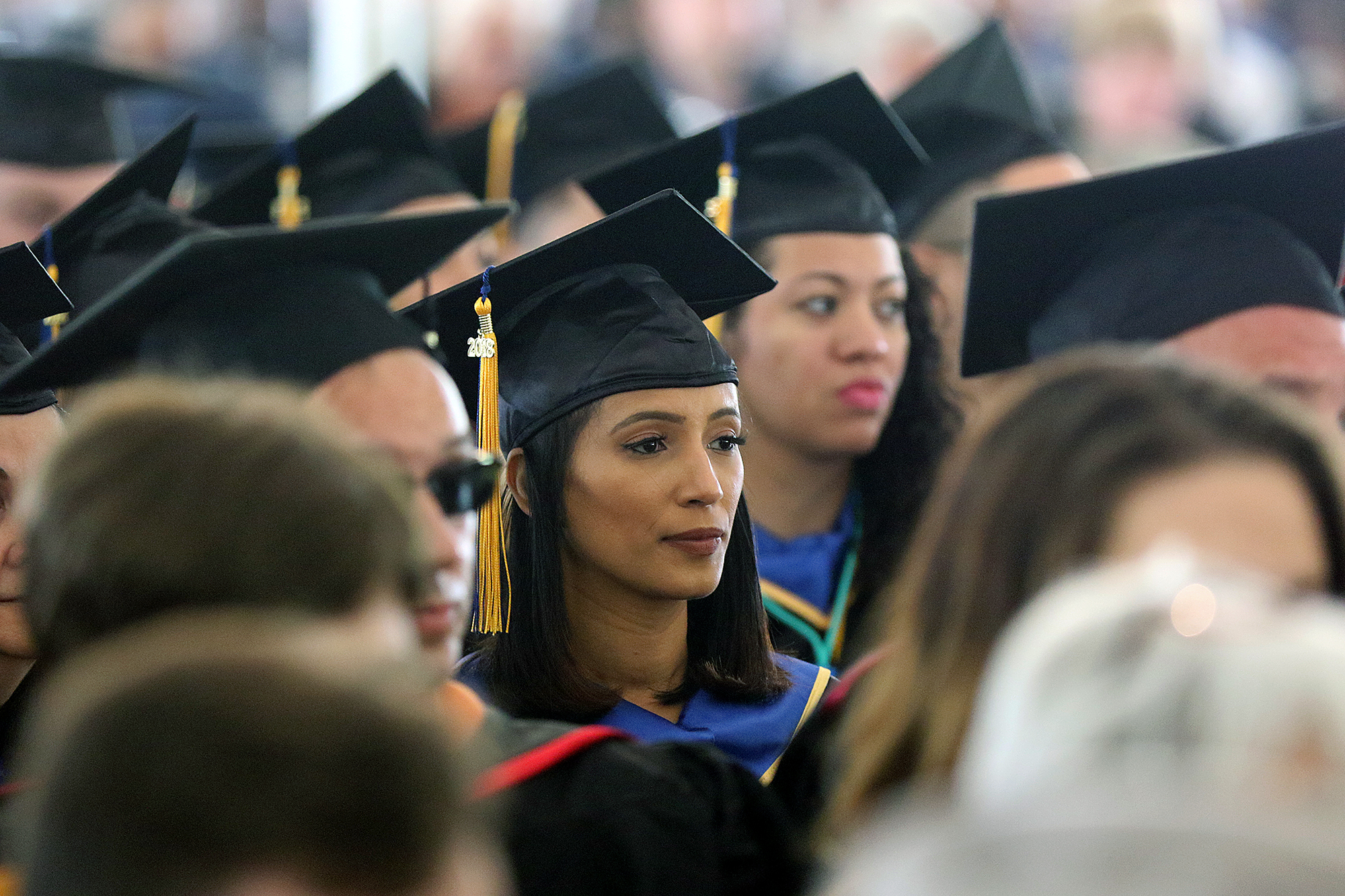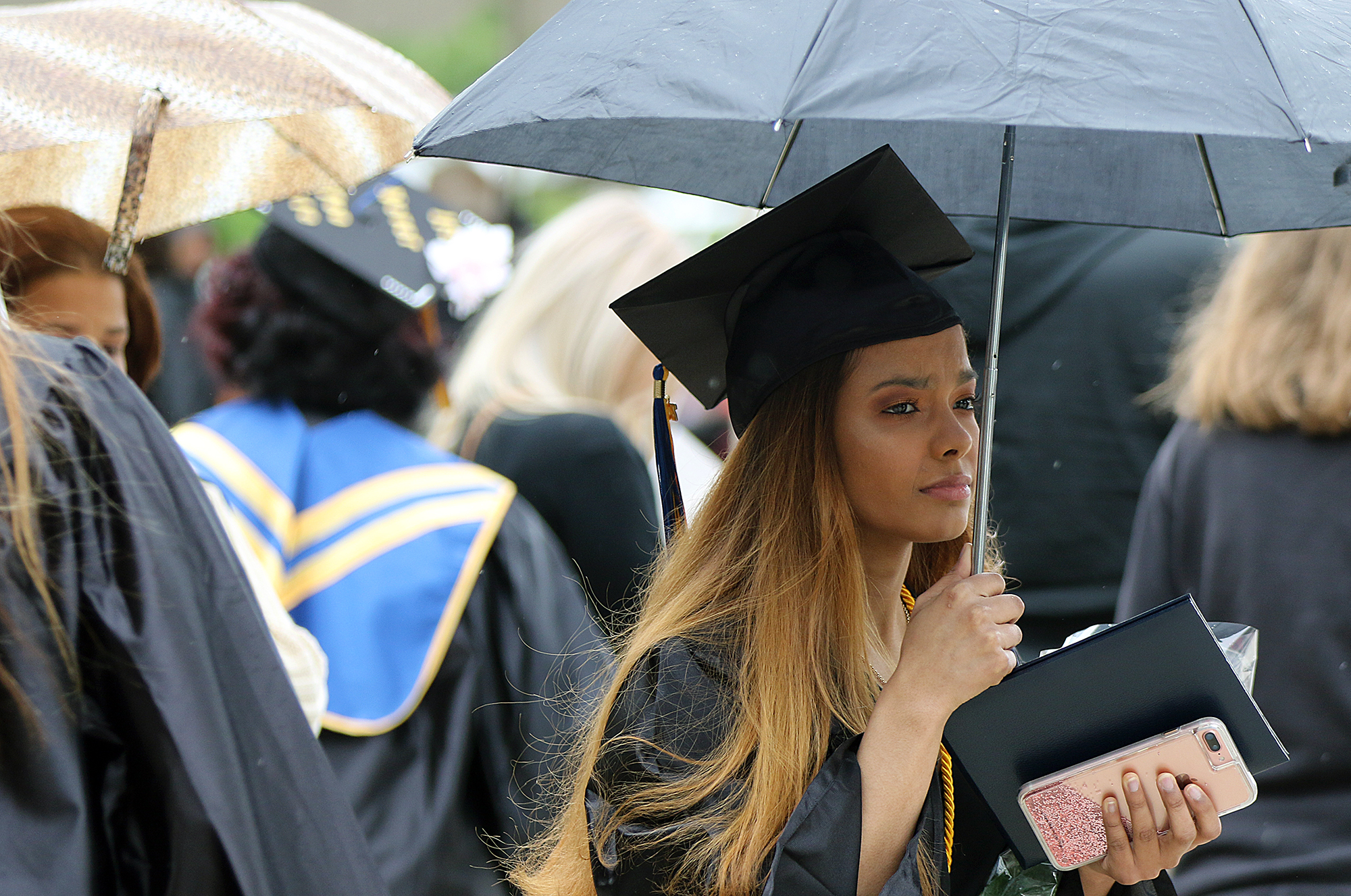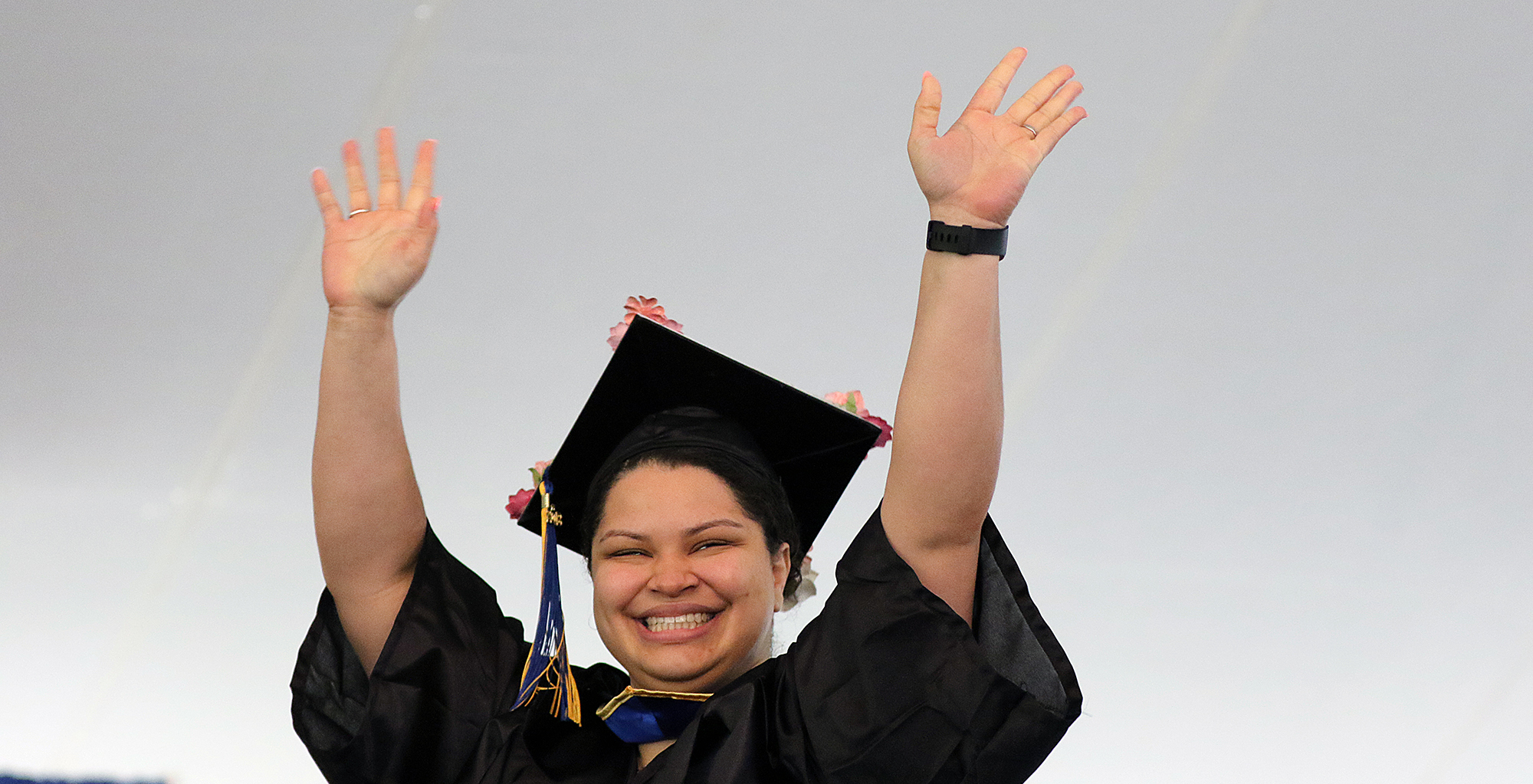 Student speaker Malina Popa, a native of Romania, who earned her degree in engineering science, told her fellow classmates, “My fellow grads, I applaud you for your amazing achievement. Many of you had to face obstacles that might have seemed insurmountable, challenges such as poverty, problems with your immigration status, limited English proficiency, or lack of support. However, you all rose to the occasion, every single time…”