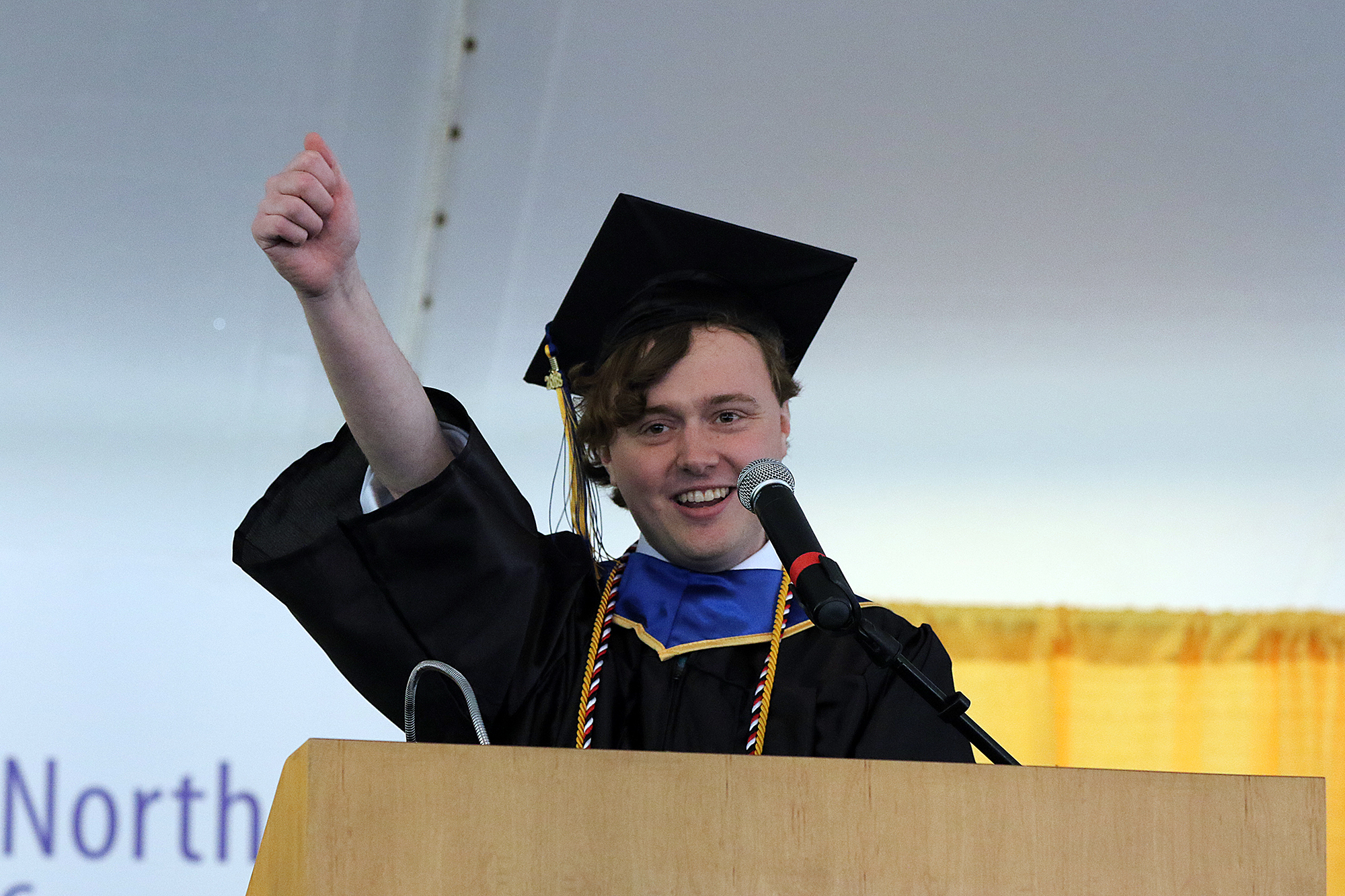 He acknowledged that many in attendance might wonder what qualifies him, a “24-year- old who is still figuring it all out, to give advice…I’m not so sure myself. But, I’ve picked up a couple things during my past few years in public service, and maybe they’ll be helpful to your journey beyond graduation…First, don’t be afraid to look stupid. Anyone who accomplished anything looked stupid at least 15 times before getting there… Second– there are two factors that can make or break any personal or professional endeavor. Egos and empathy…Big egos build walls and empathy moves mountains and invites understanding… Finally, revisit your purpose. Life gets crazy and it is important to keep your main mission in mind. As