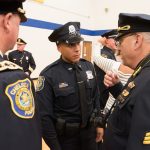Methuen Sgt. Dan O’Connell, interim NECC/MPD Police Academy director, congratulates a student officer.
