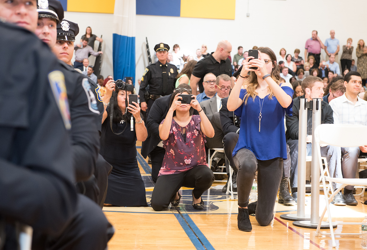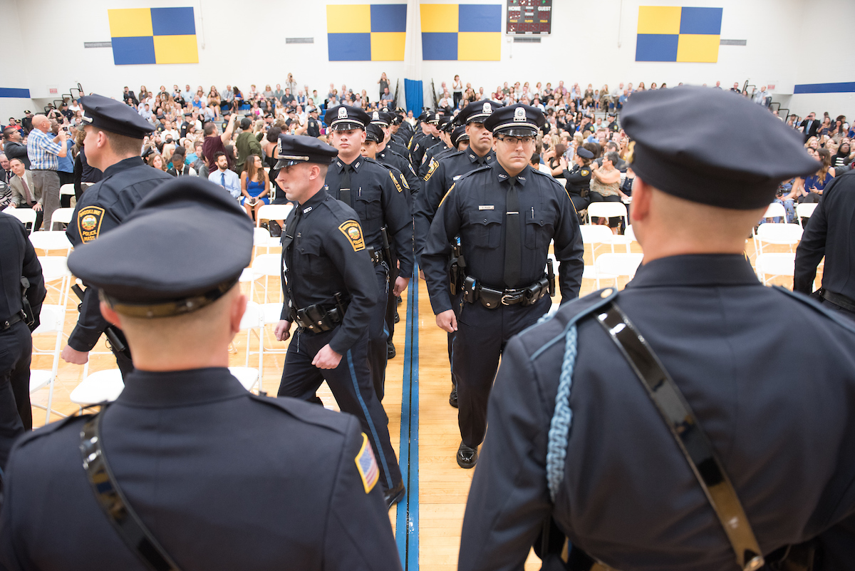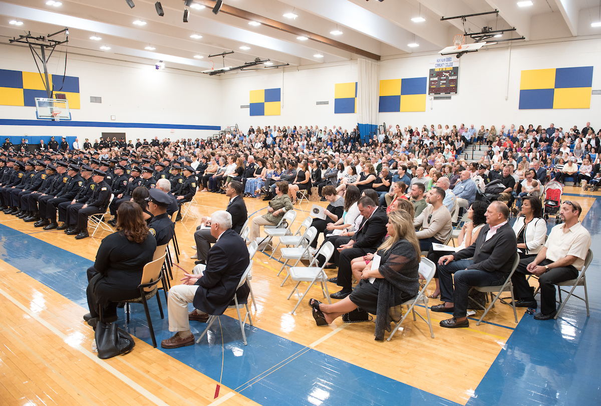 George Moriarty, Northern Essex Community College director of workforce development and adult education, said it was inspiring to see the gym filled with family and friends in support of the student officers as they fulfill their dreams.