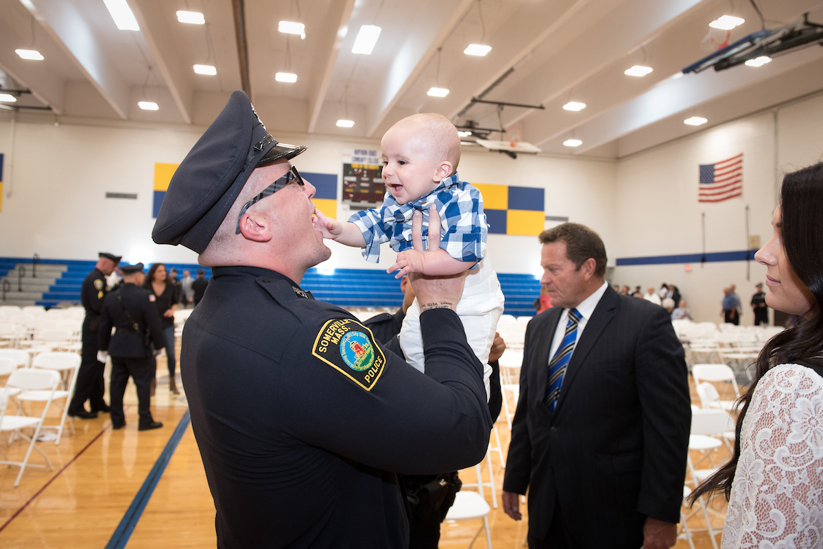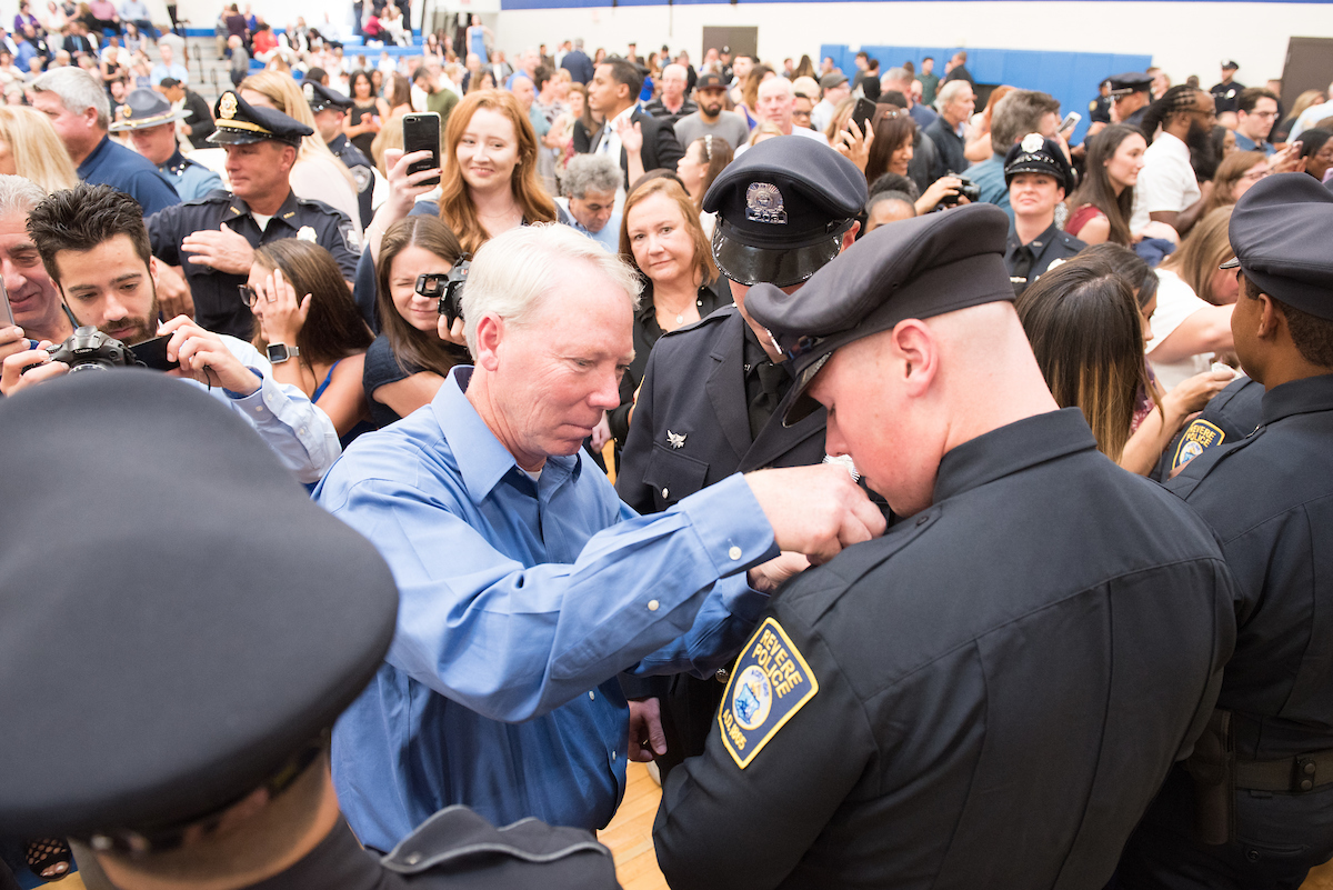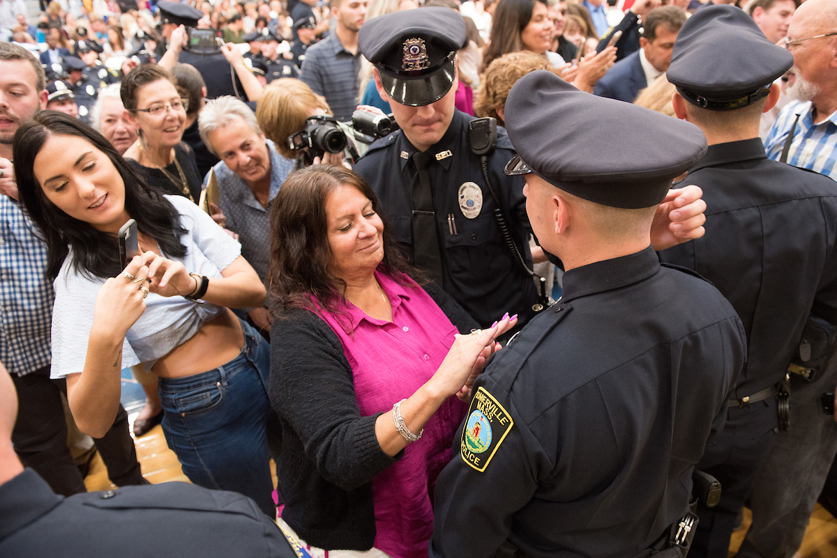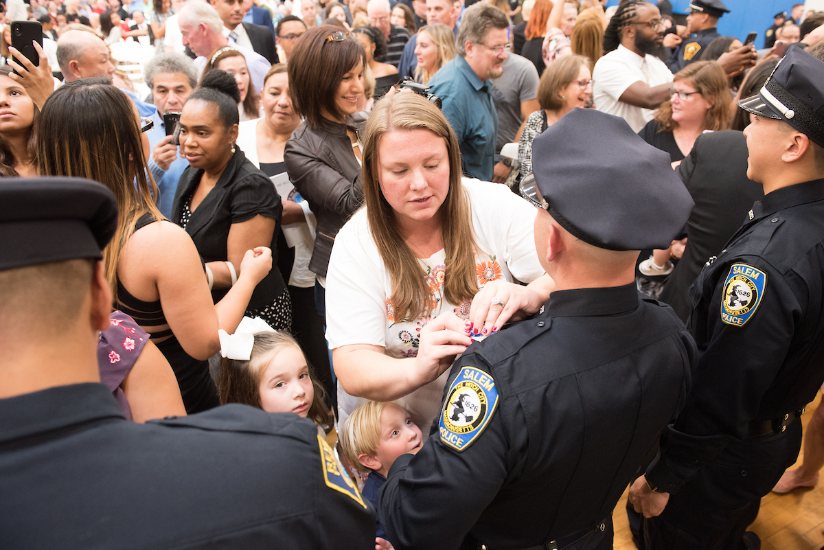 George Moriarty, Northern Essex Community College director of workforce development and adult education, said it was inspiring to see the gym filled with family and friends in support of the student officers as they fulfill their dreams.