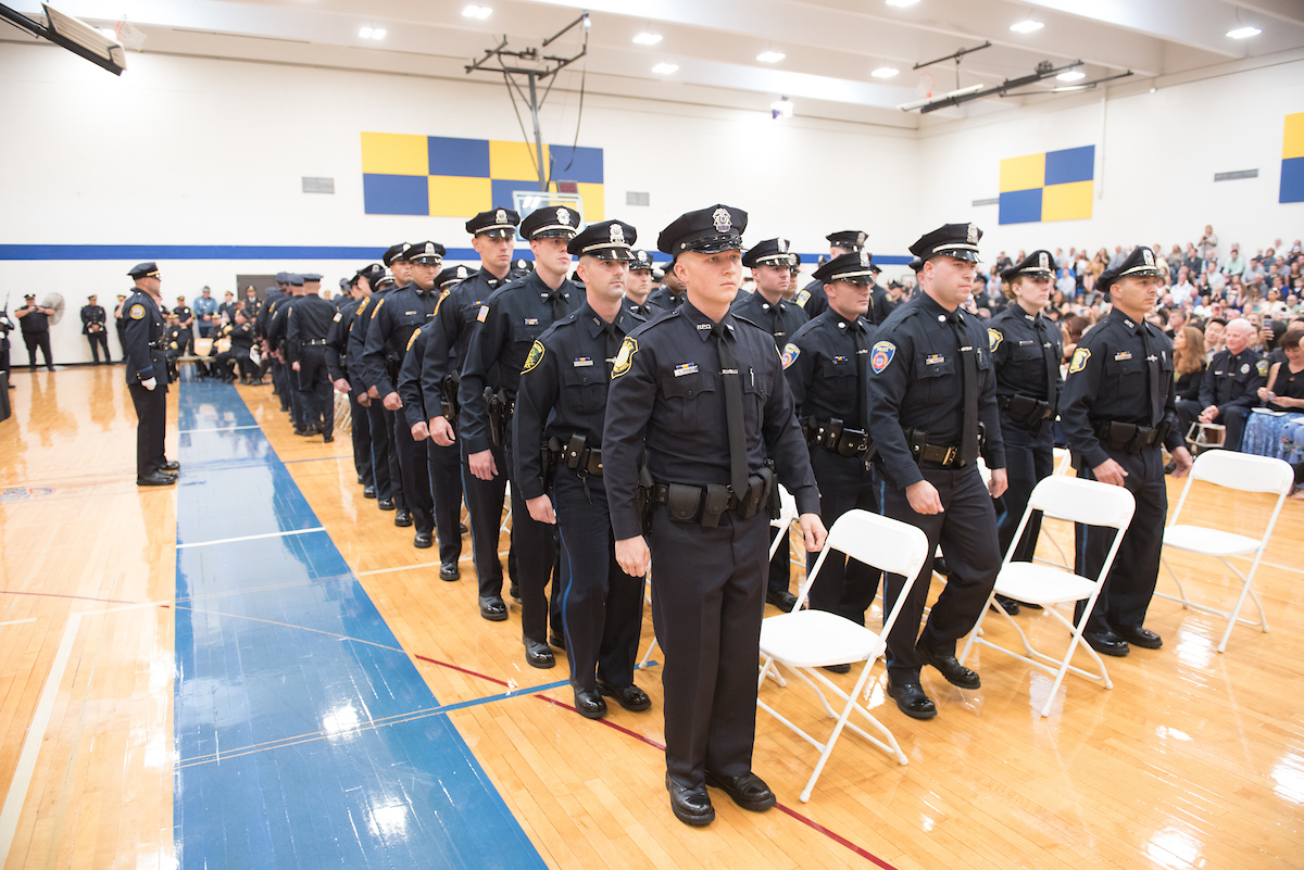 It was the largest academy graduation with 77 graduates ranging in age from 22 to 52 representing 26 police departments. Both Brookline and Lawrence had the largest representation with nine student officers each.