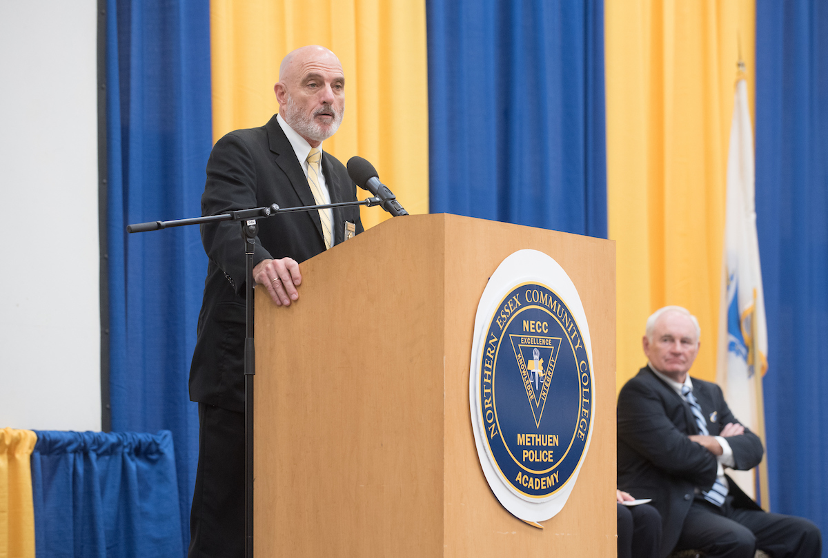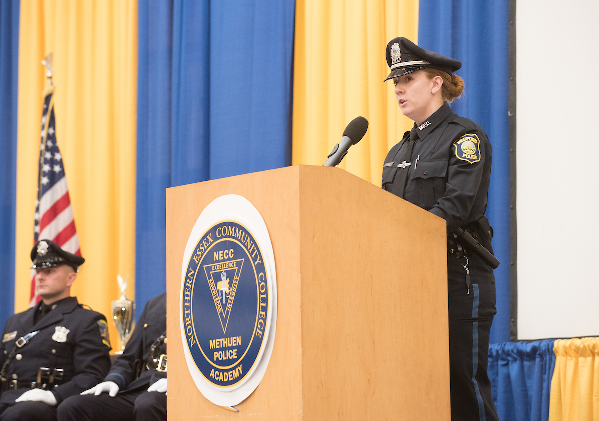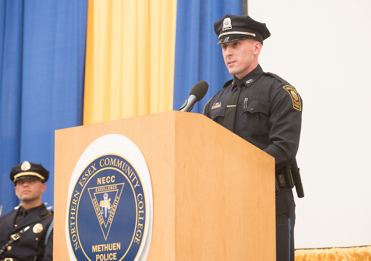 Methuen Sgt. Dan O’Connell, interim director of the NECC/MPD Academy, reassured the graduates that they are ready to serve as “confident & competent” police officers.