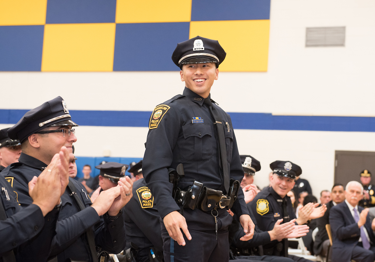 Another Brookline officer Tim Novak, 35, was a U.S. Army veteran who had earned a graduate degree and taught history before deciding to tap into past military police training, and apply to the academy.