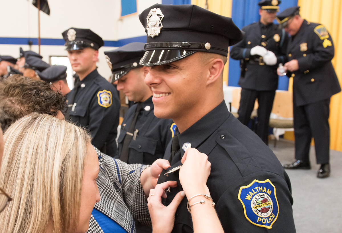 Graduates came from diverse backgrounds like Maseana Wright, 29, of Brookline. A young, single mom, who briefly called a shelter home, she earned an associate degree and was working security when she saw an ad to become a Brookline police officer. After passing the civil service exam she was hired and sent to the academy. While attending the academy her dad, who lived out of state, died.