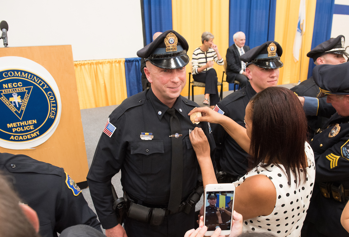Methuen Mayor James Jajuga, who watched as three Methuen police officers graduated, said being a police officer is the “best profession in the whole world as far as I’m concerned.”