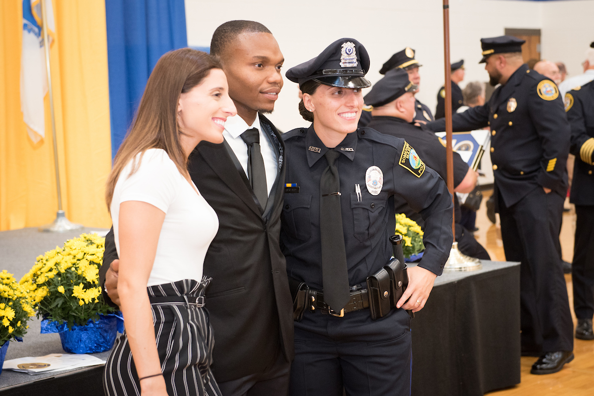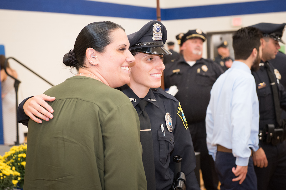 All the graduates completed an intensive 24-week program that covered constitutional law, prevention and intervention, community policing, domestic violence, elder abuse, victims’ rights, and other topics. All training took place on the Haverhill Campus except for firearms training and emergency driving techniques, which were held, at off-campus locations.