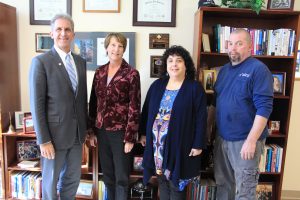 Northern Essex Community College President Lane Glenn congratulates the third quarter recipients of the NECC Employee Recognition Award. (L to R) President Lane Glenn, Karen Hruska, Janice Grant Menes, and Robert Scott Howes.